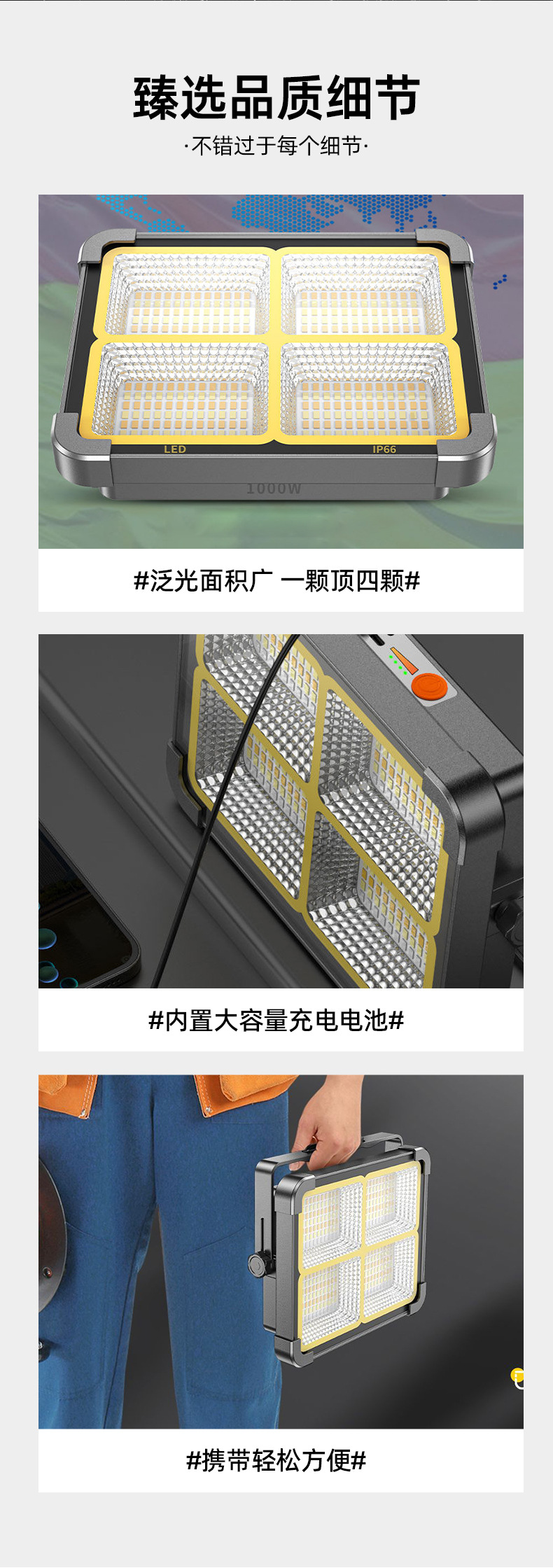 태양광 조명, 야시장 조명, 매우 밝은 충전식 캠핑 비상 충전식 모바일 휴대용 조명, 자기 흡입 조명스토어 가기