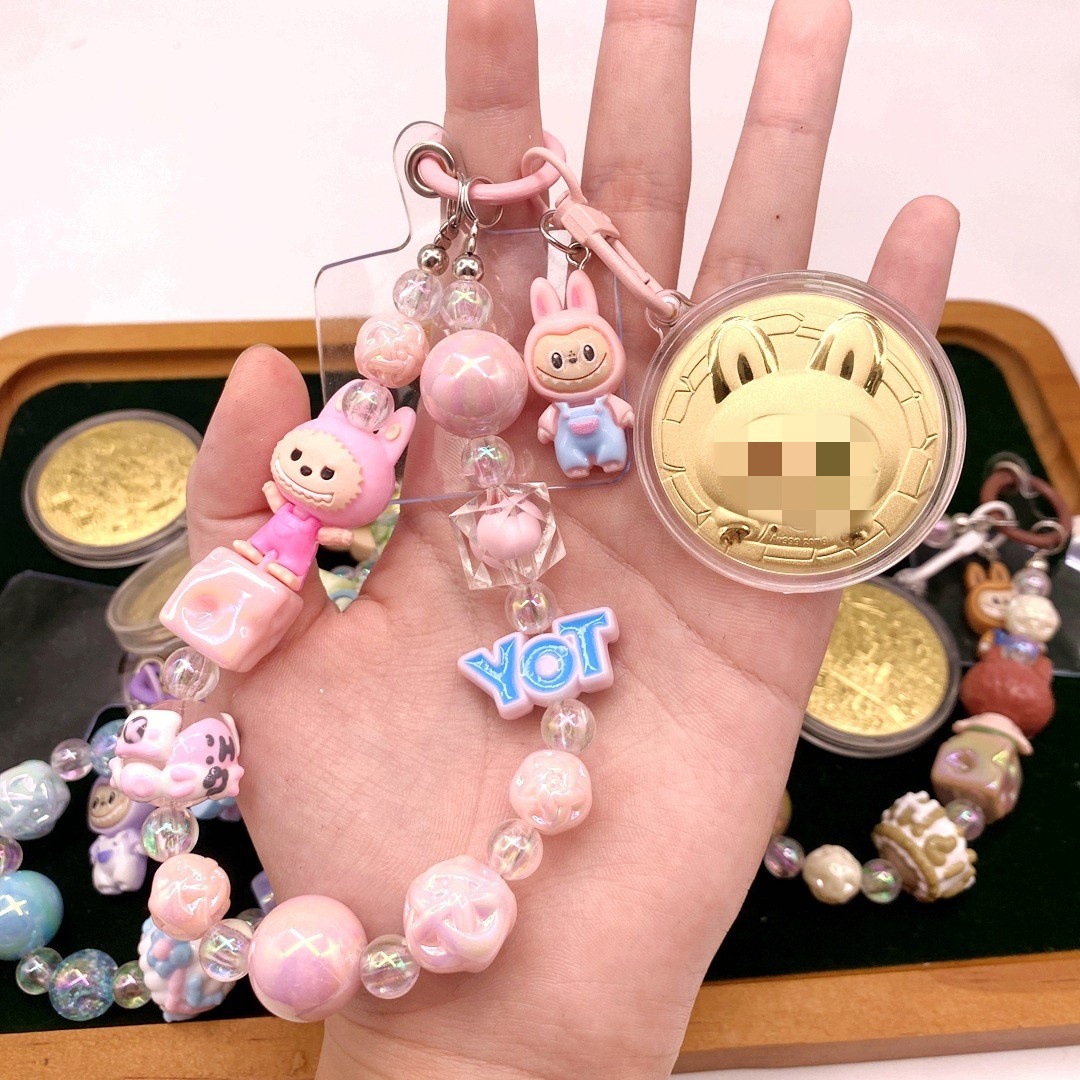 심천 수베이 동일 스타일 순금 만화 키체인 핸드폰 줄 가방 장식 자동차 장식품 여자친구에게 선물로