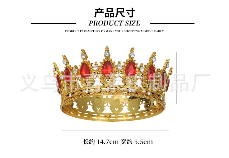 유럽과 미국의 국경 간 바로크 플라스틱 워터 드롭 크라운 티아라 신부 웨딩 사진 액세서리 전체 라운드 성인식 티아라