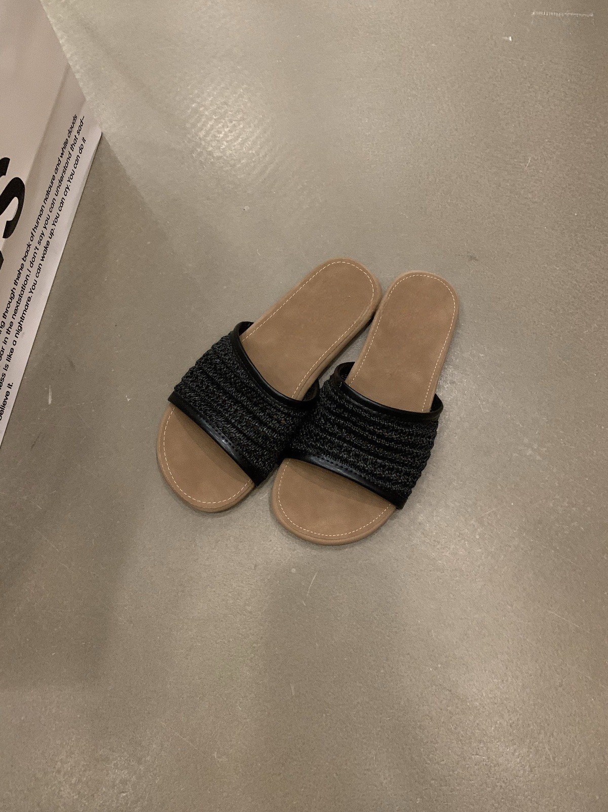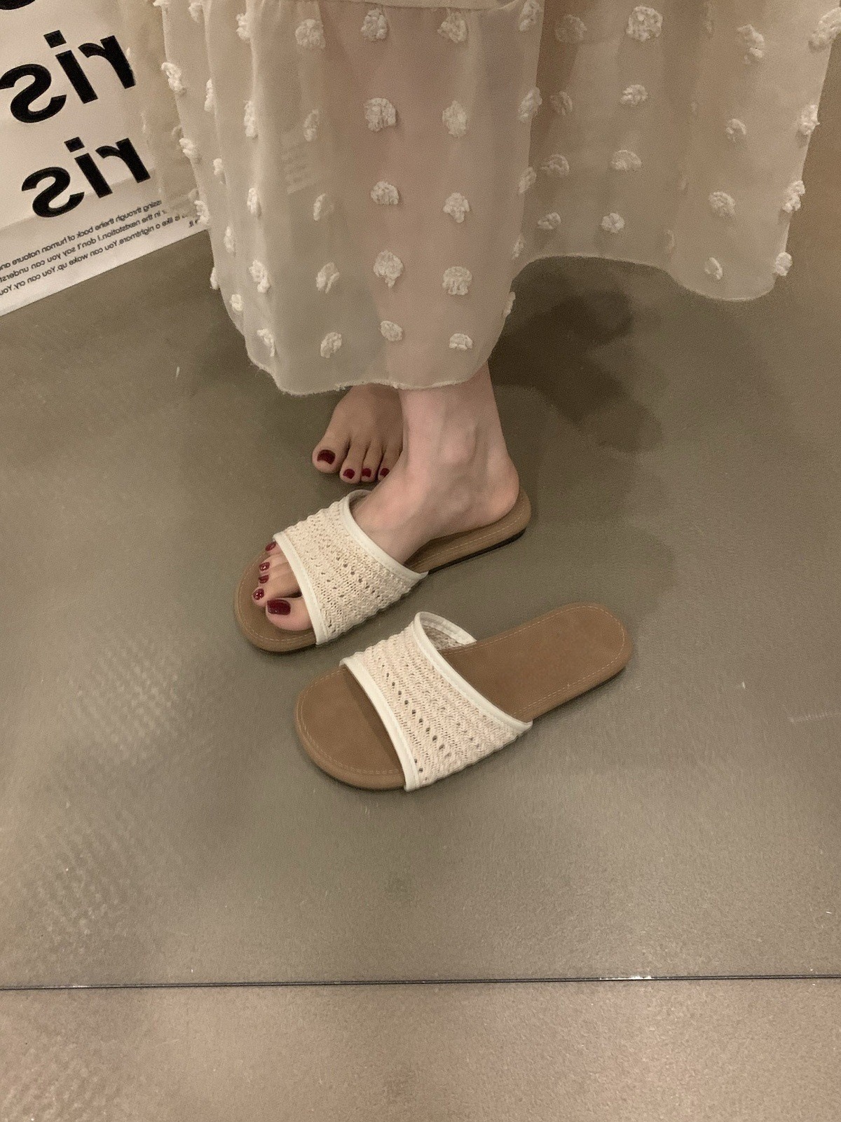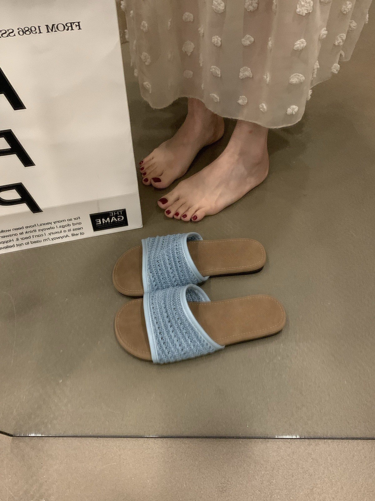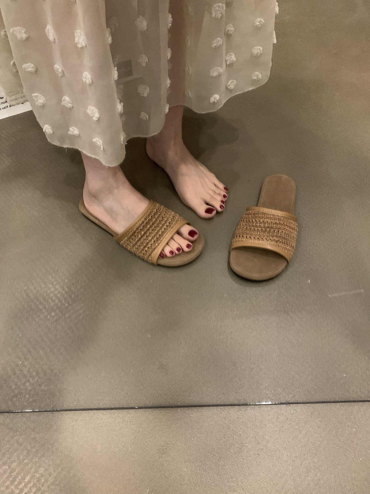 2025 새로운 여름 플랫 슈즈 한국 스타일 샌들 패셔너블하고 다재다능한 휴가 스타일 여성용 샌들 및 슬리퍼스토어 가기