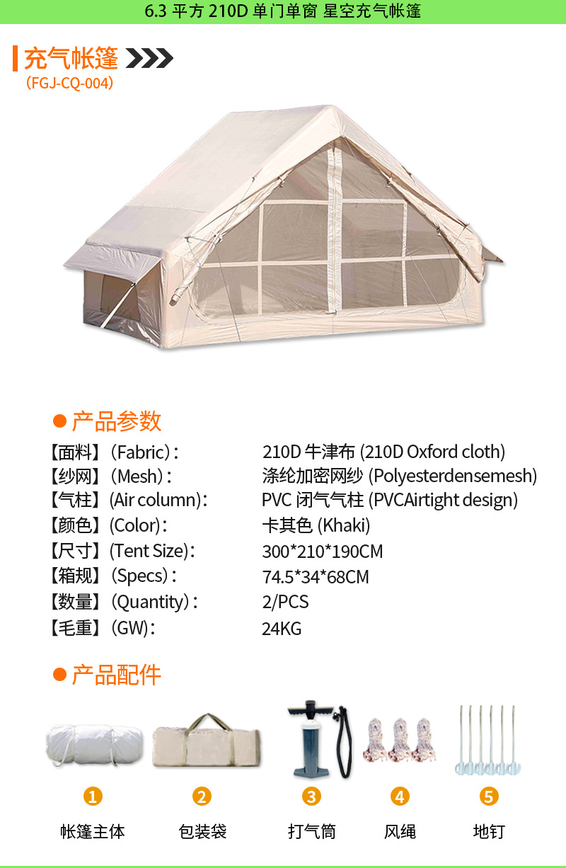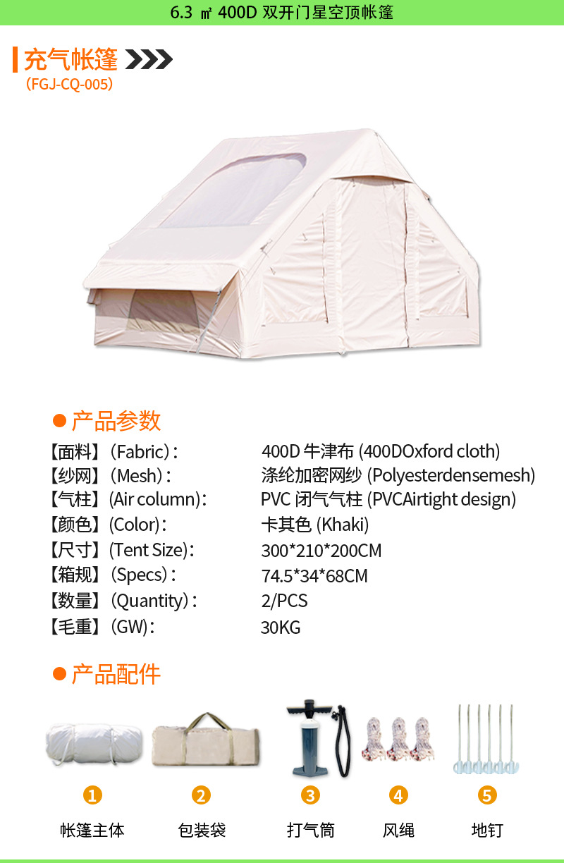 • [6.3 평방 미터] 210D 단일 문 단일 창 별이 빛나는 하늘 상단 풍선 텐트