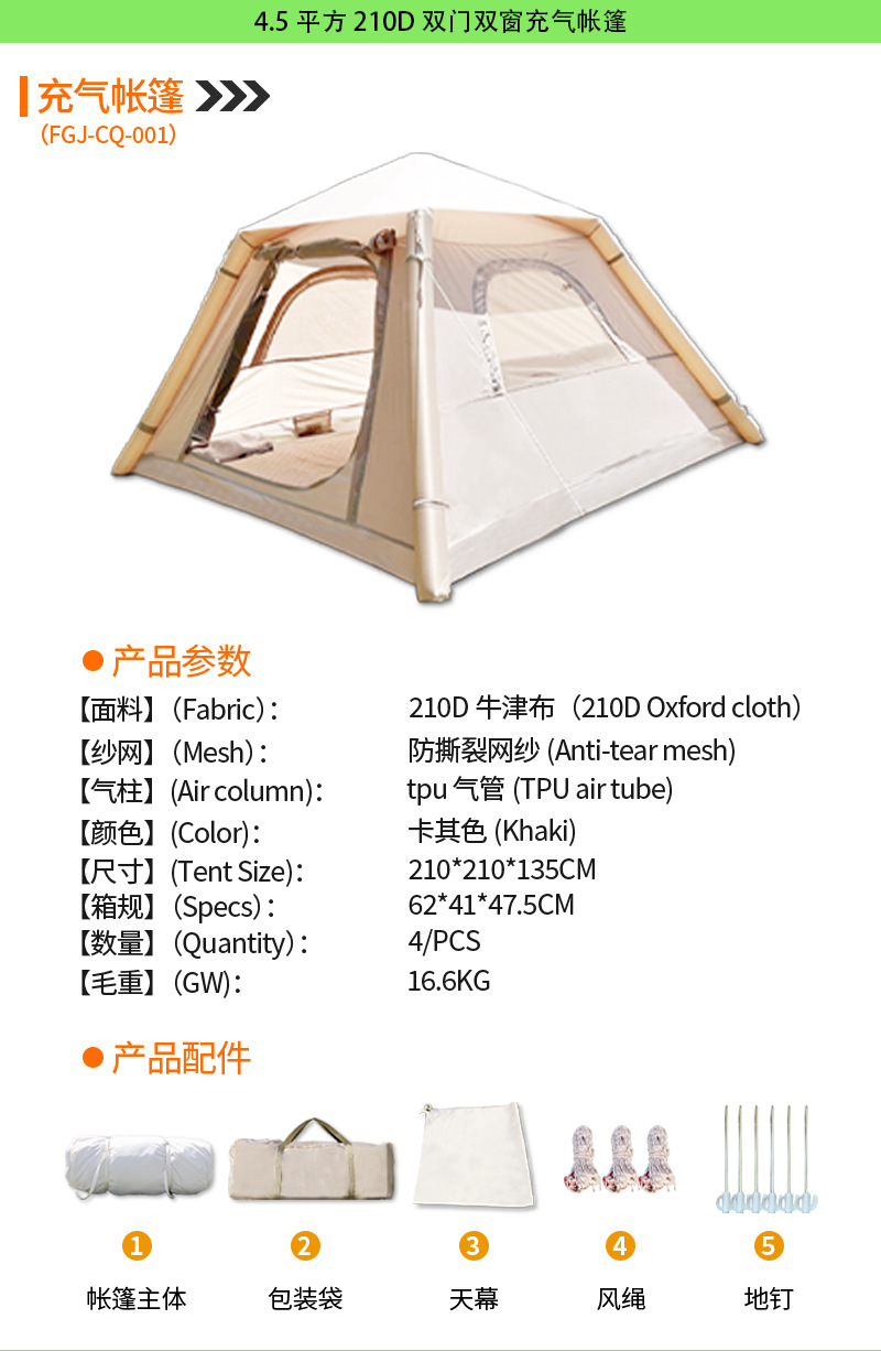 • [4.5 평방 미터] 210D 이중 문 및 이중 창 풍선 텐트