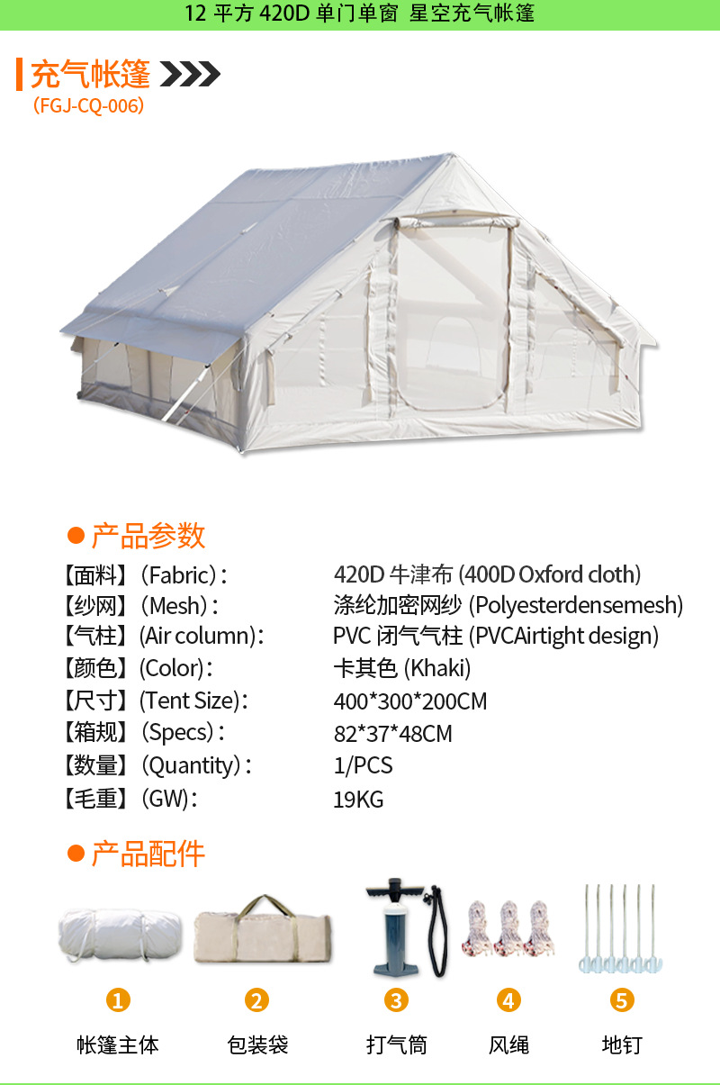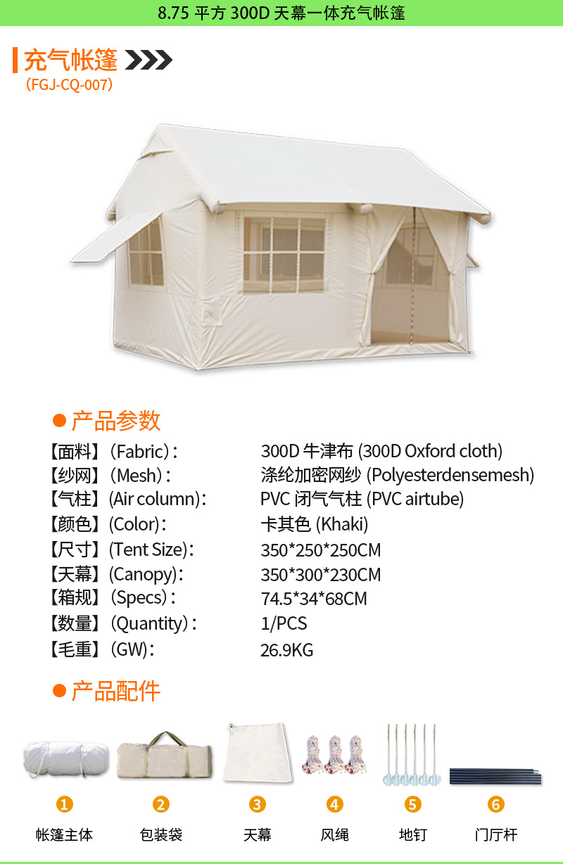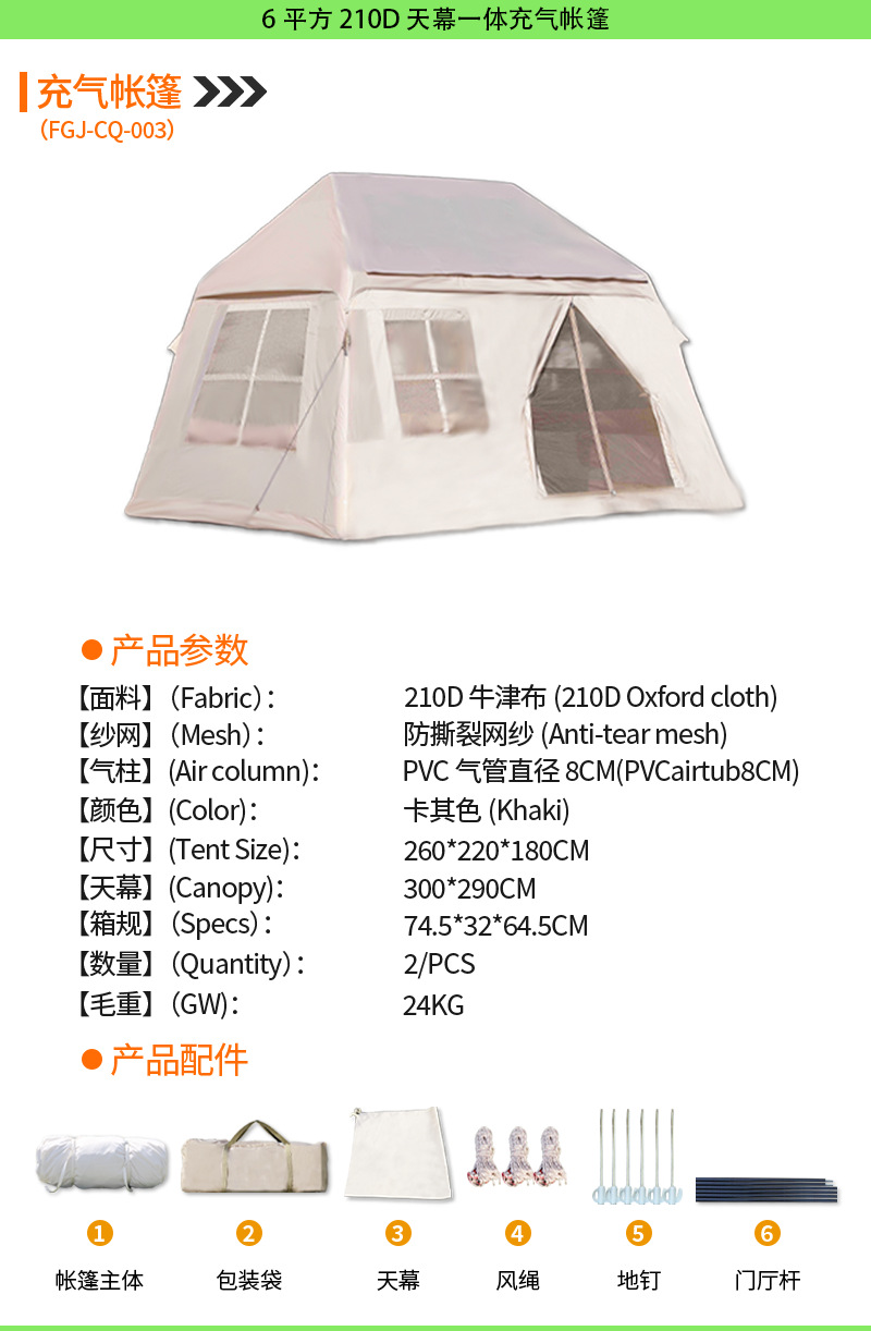 • [6 평방 미터] 210D 캐노피 통합 풍선 텐트