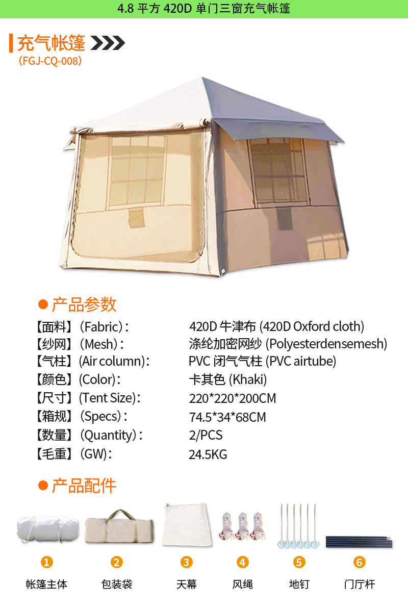 • [4.8 평방 미터] 420D 단일 문 3 창 풍선 텐트