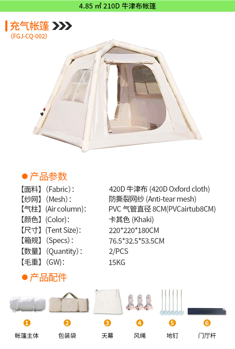 • 옥스포드 천 방수 바닥 텐트 + 수동 공기 펌프
