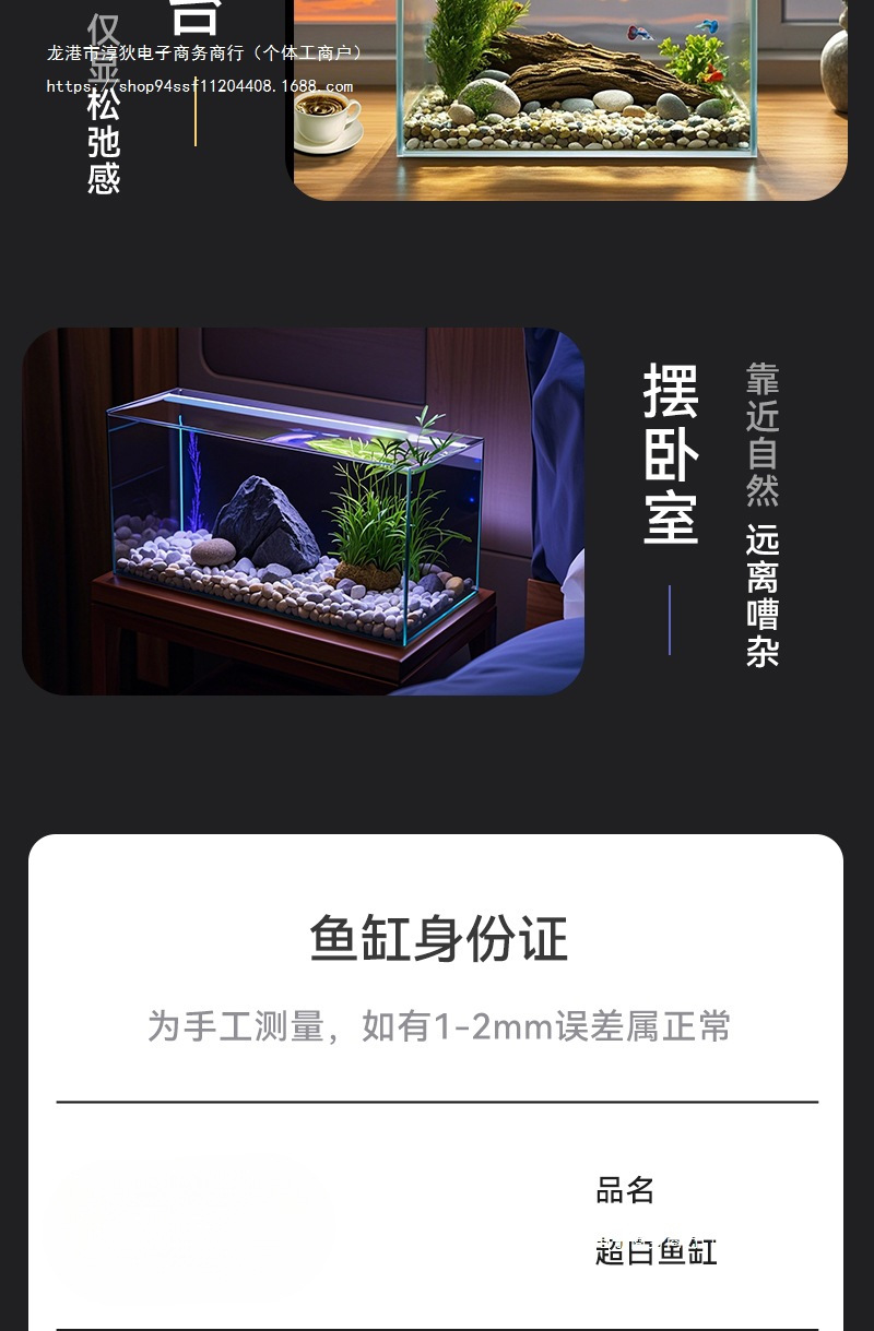 2025 새로운 슈퍼 화이트 물고기 탱크 거실 작은 황금 크리스탈 유리 사각형 거북이 생태 수족관 홈 데스크탑스토어 가기