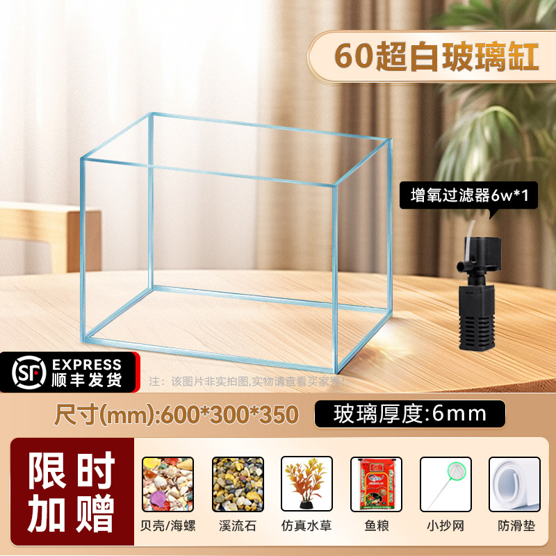 • [럭셔리 패키지 - SF Door to Door] 진징 슈퍼화이트 60수조(60*30*35cm) 두께 6mm(산소필터 6w+수조조명)