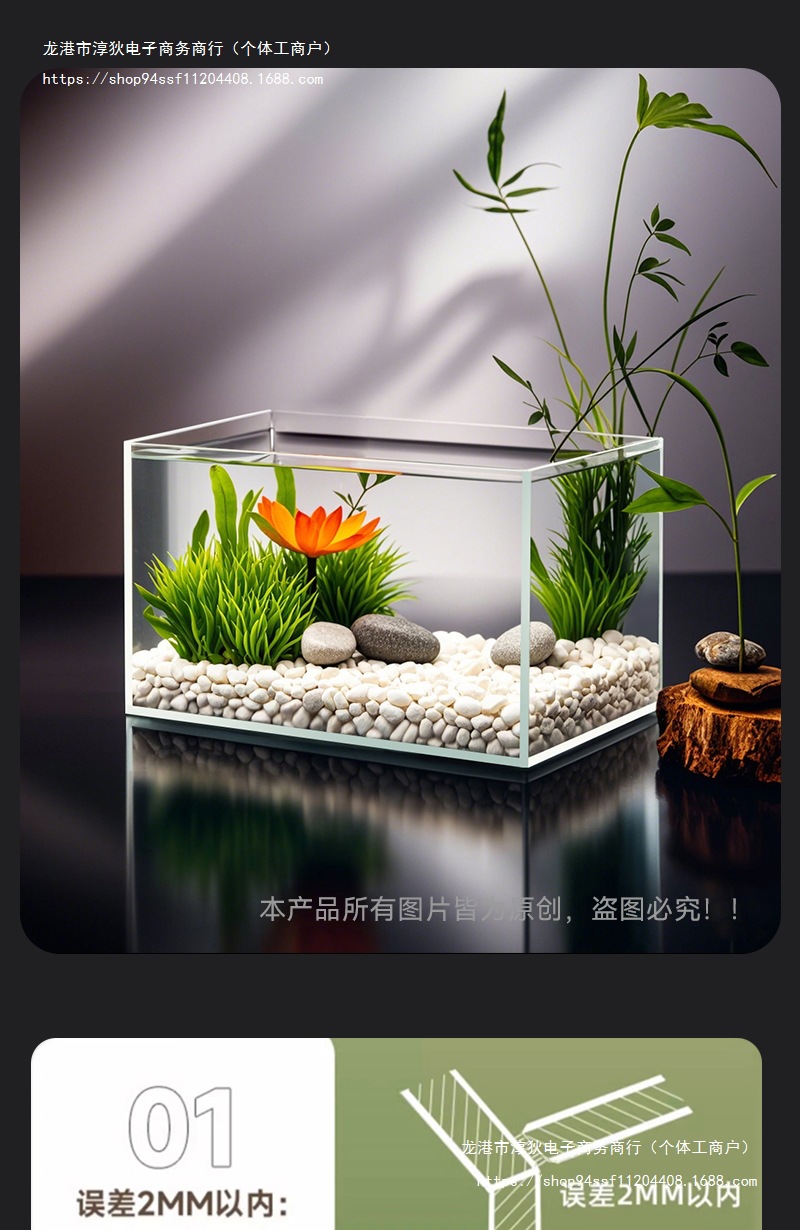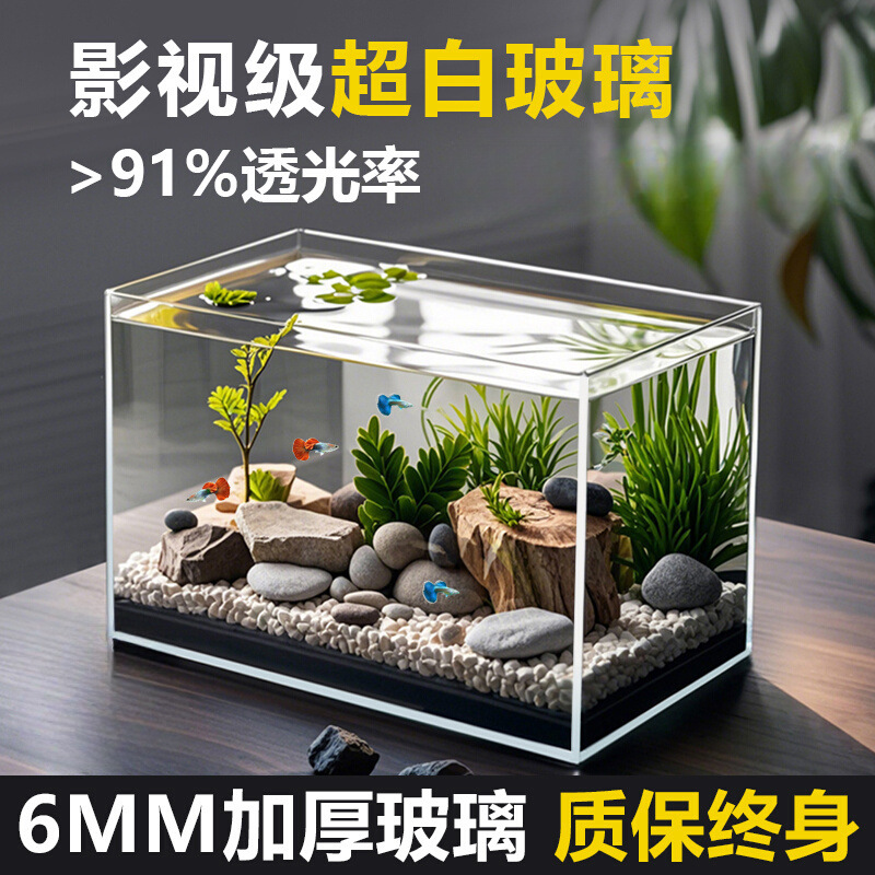 2025 새로운 슈퍼 화이트 물고기 탱크 거실 작은 황금 크리스탈 유리 사각형 거북이 생태 수족관 홈 데스크탑