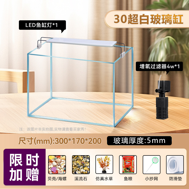 • [럭셔리 패키지] 진징 슈퍼화이트 30수조(30*17*20cm) 두께 5mm(산소필터 4w+수조조명)