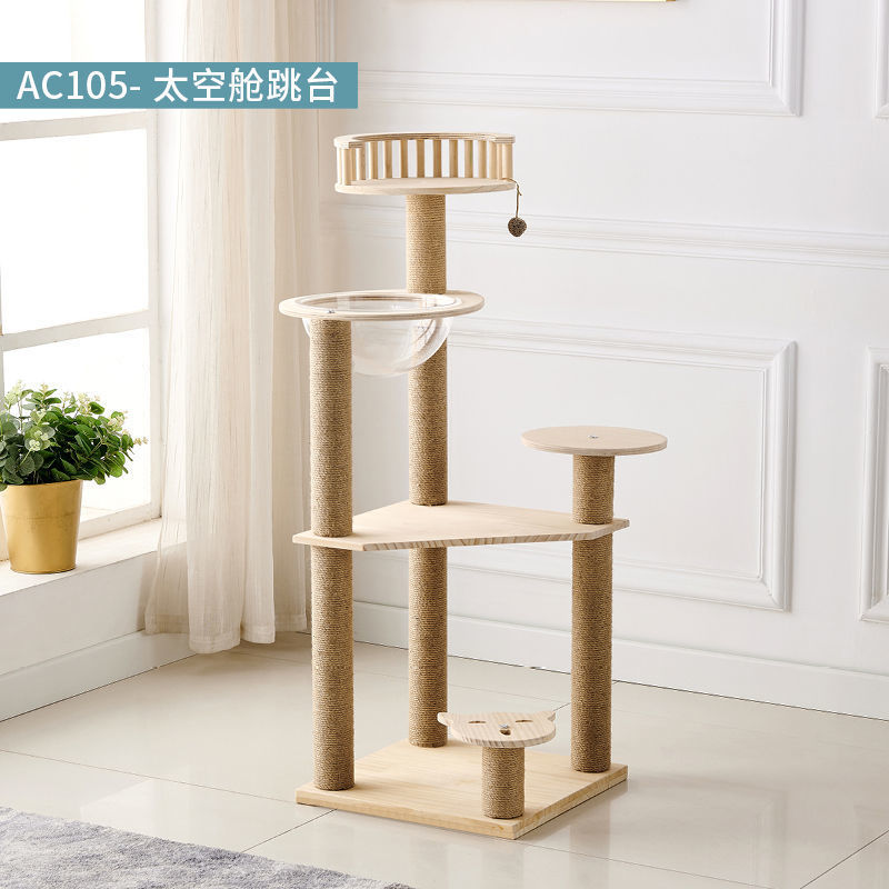 고양이 클라이밍 프레임, 원목 우주 캡슐, 고양이 둥지, 고양이 트리 선반, 일체형 점프 플랫폼, 대형 사계절 목조 빌라 고양이 클라이밍 프레임