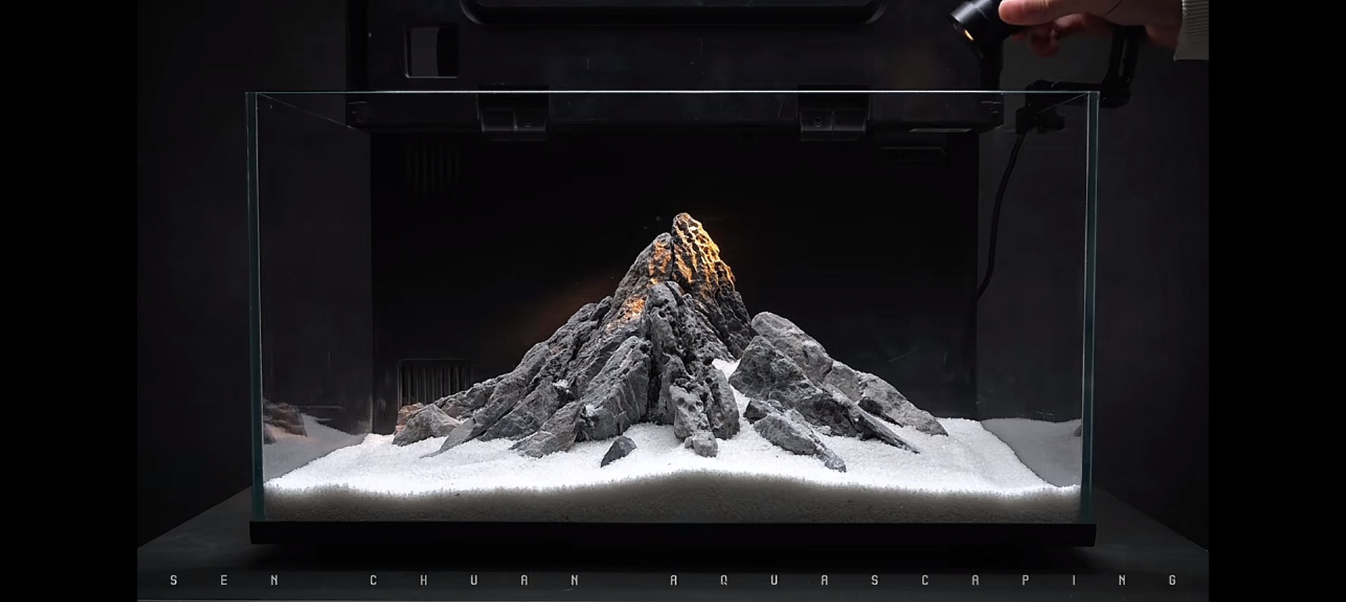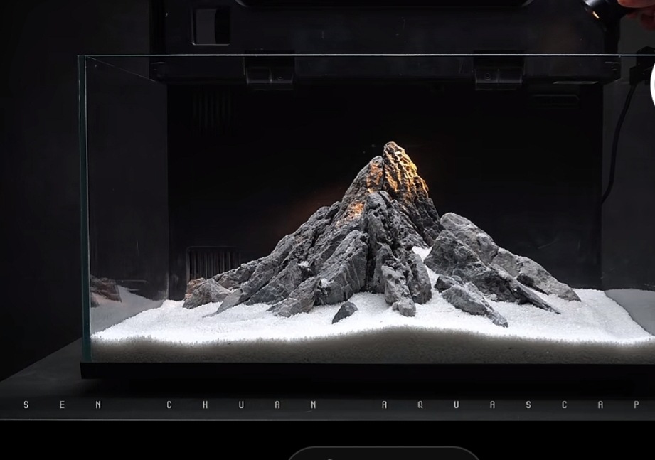 • 30-35 긴 수조, 햇빛이 비치는 설산 풍경, 흰색 바닥 모래 포함