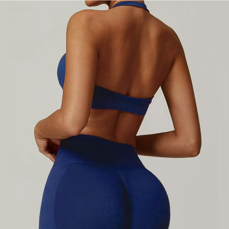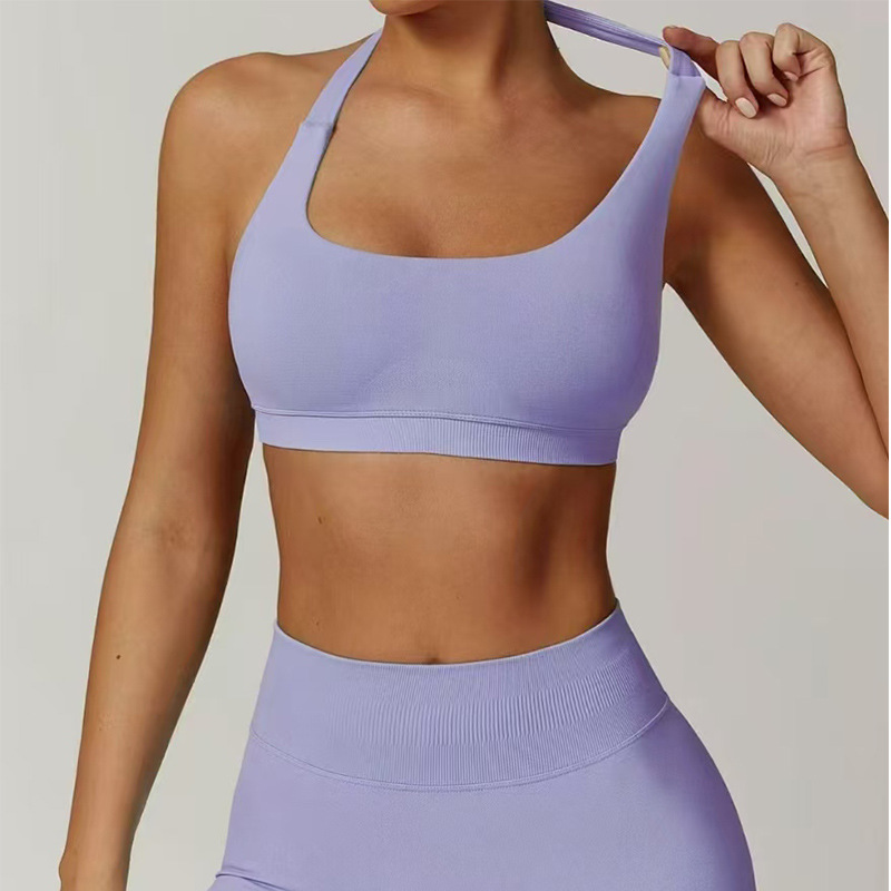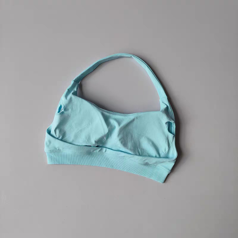 유럽 및 미국 아마존 스포츠 홀터넥 브라, 고탄력 스포츠 브라, 패드 내장, 무광 나일론 요가 피트니스 브라스토어 가기