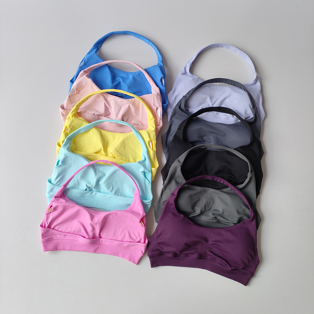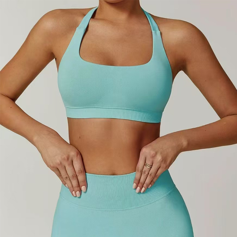유럽 및 미국 아마존 스포츠 홀터넥 브라, 고탄력 스포츠 브라, 패드 내장, 무광 나일론 요가 피트니스 브라