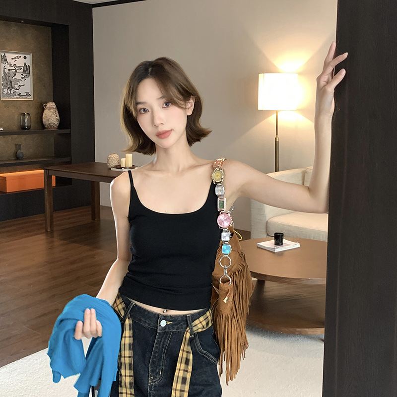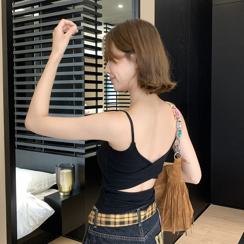높은 어깨끈, 측면 수축, 가슴 모아주는 가슴형 슬링, 순면 원단, 속이 빈 크로스 스타일 백 베스트