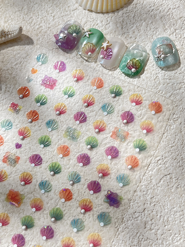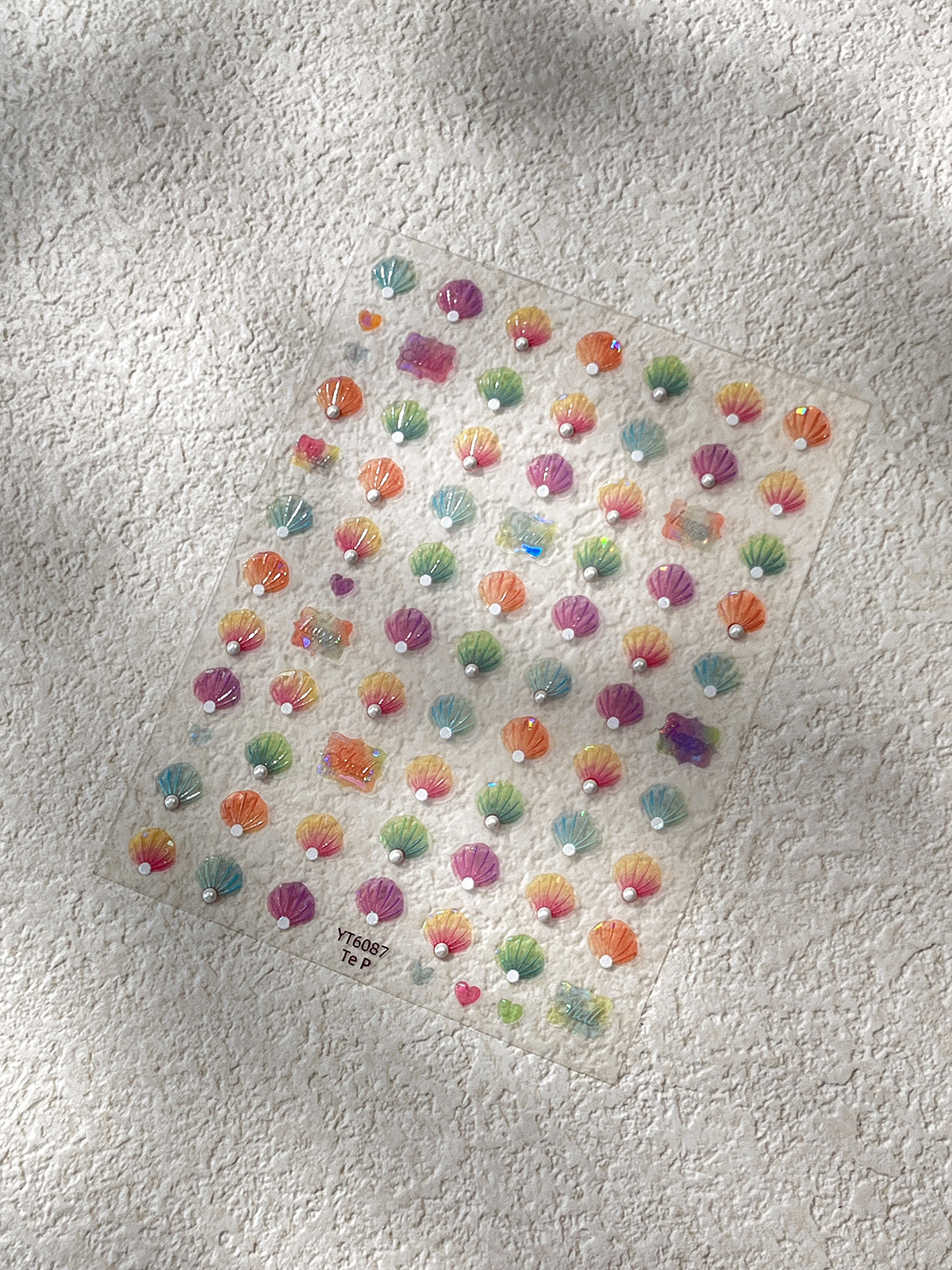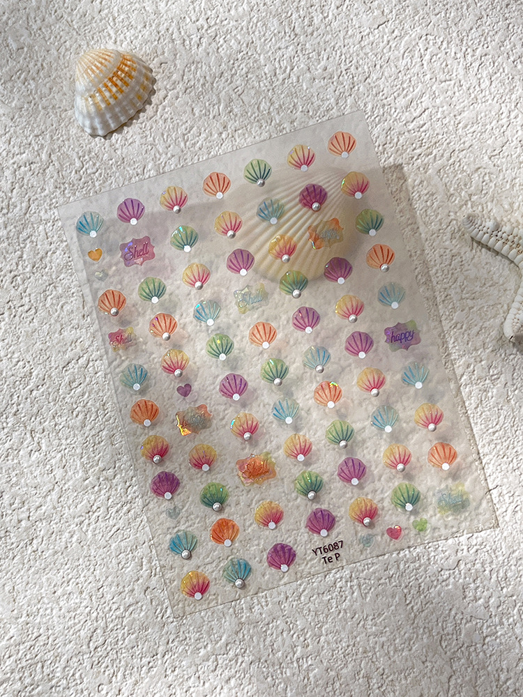 YITU 진주 쉘 라이트 쉘 진주 네일 아트 스티커 귀여운 다채로운 쉘 장식 스티커 YT6087