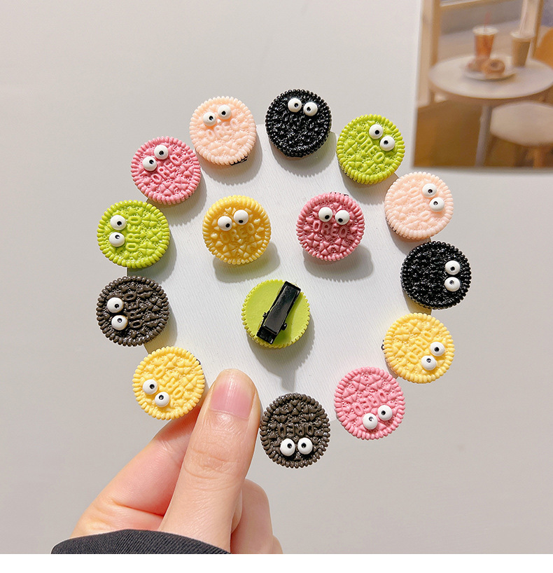 시뮬레이션 음식 장난감 큰 눈 비스킷 머리핀 귀엽고 재미있는 캔디 컬러 학생 헤어 액세서리 어린이 사이드 클립 일본과 한국의 재미