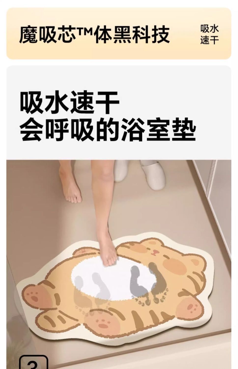 만화 규조토 진흙 바닥 매트, 욕실 및 화장실 특수 모양의 미끄럼 방지 흡수성 발 매트, 거실 입구 문 간편한 관리 카펫스토어 가기