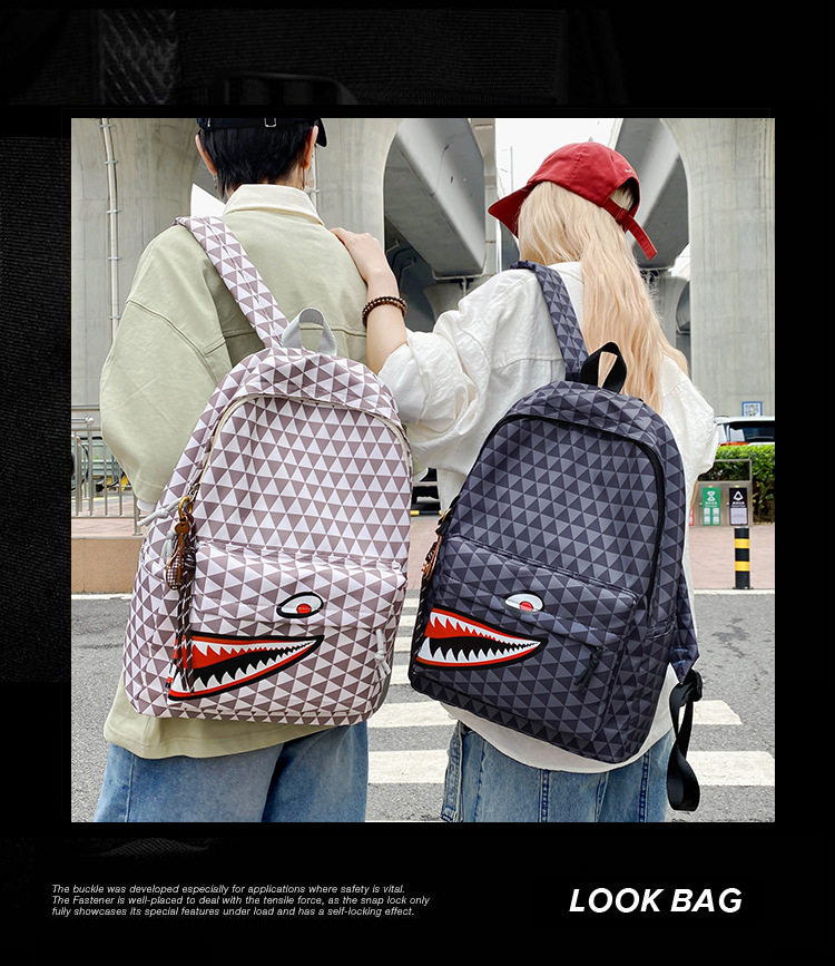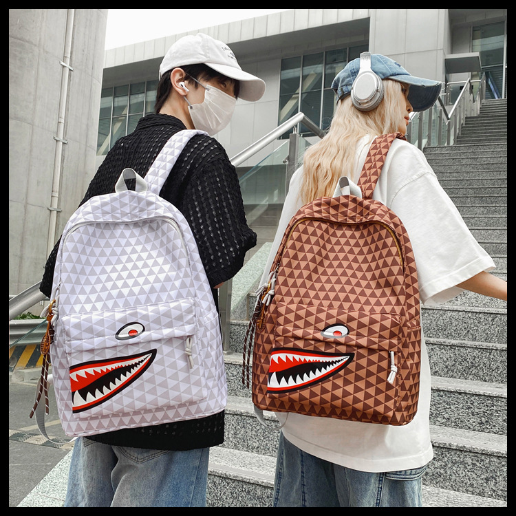 새로운 고급스러운 틈새 트렌드 쿨 상어 입 배낭 커플 캐주얼 심플 경량 대용량 배낭스토어 가기