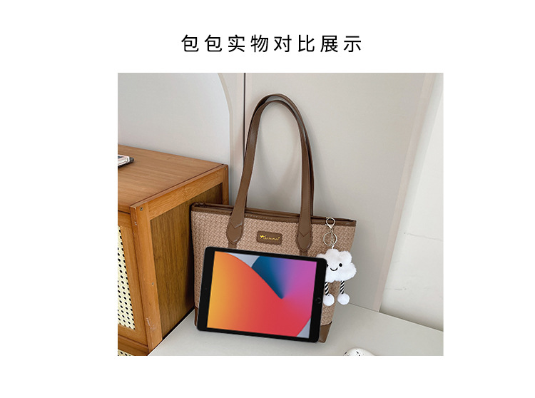 토트백 한국 스타일 체크무늬 대용량 가방 여성 패션 다용도 캐주얼 심플한 질감 출퇴근용 핸드백