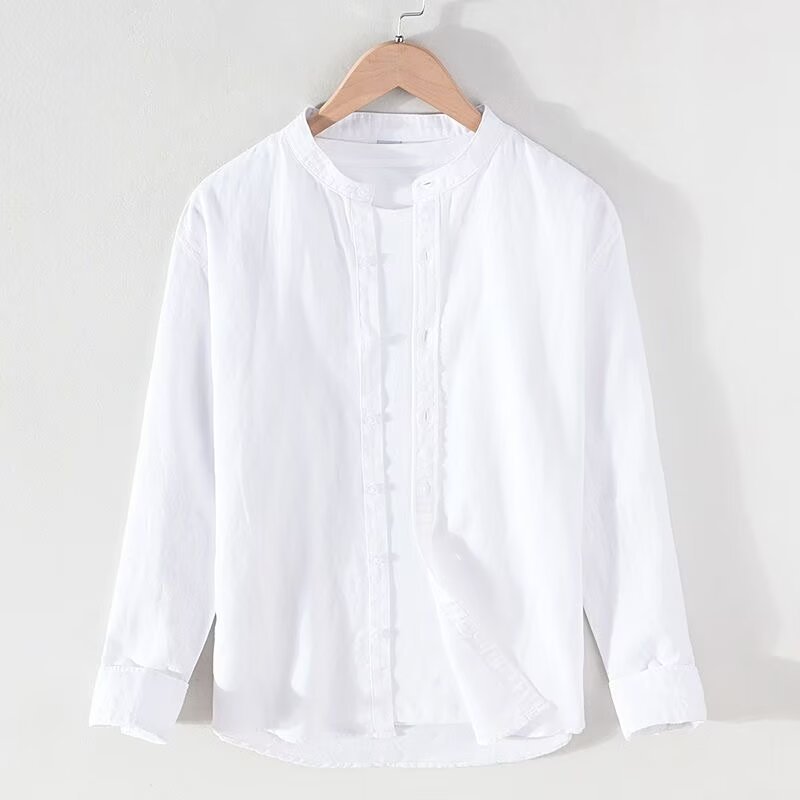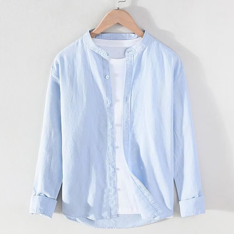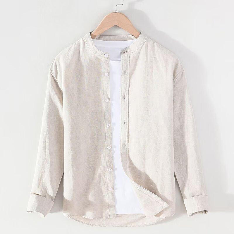 남성용 린넨 긴팔 셔츠 가디건, 단색, 고급스러운 느낌, 루즈핏, 캐주얼, 멋스러운, 봄/가을용 면/린넨 셔츠 자켓스토어 가기