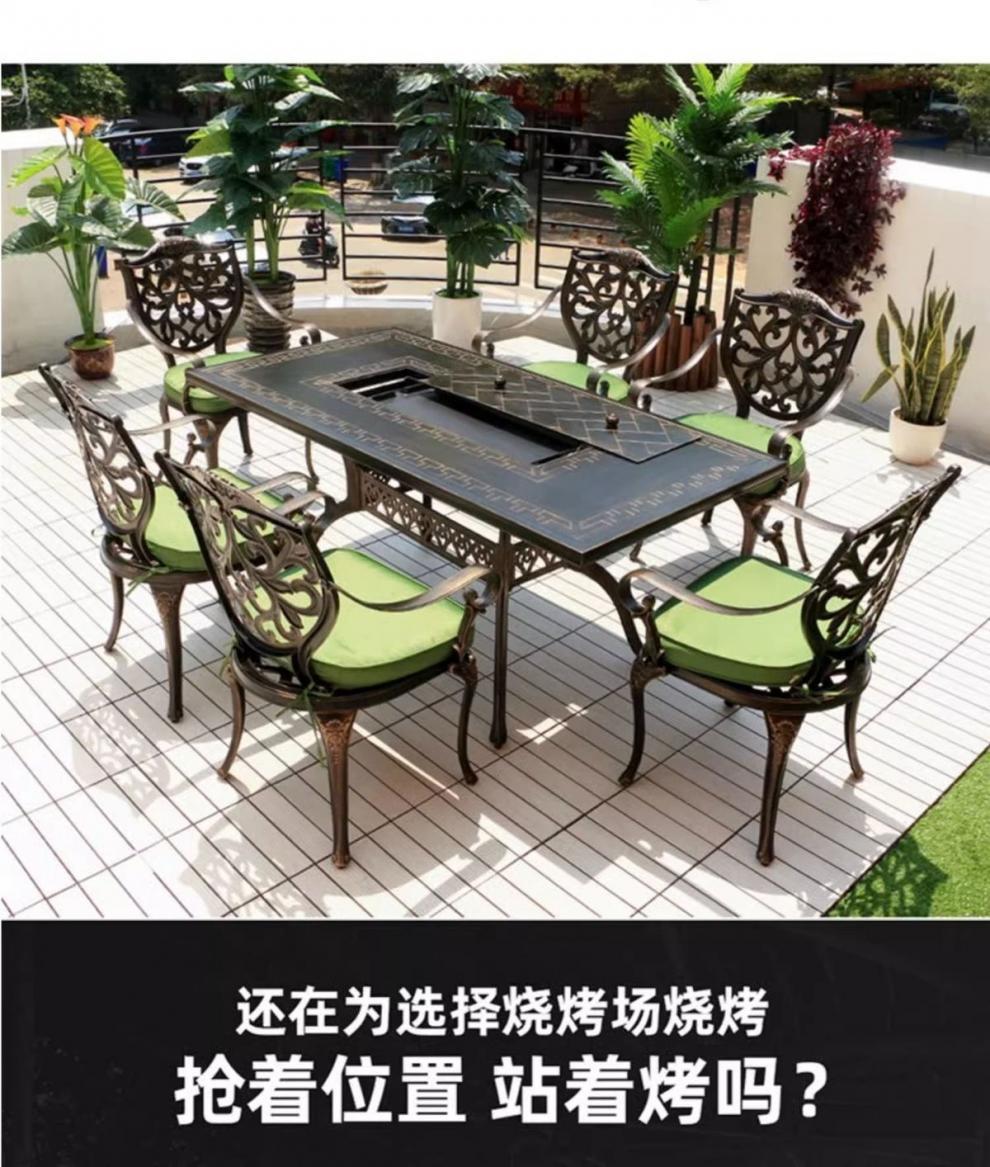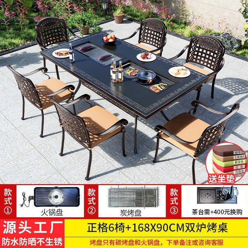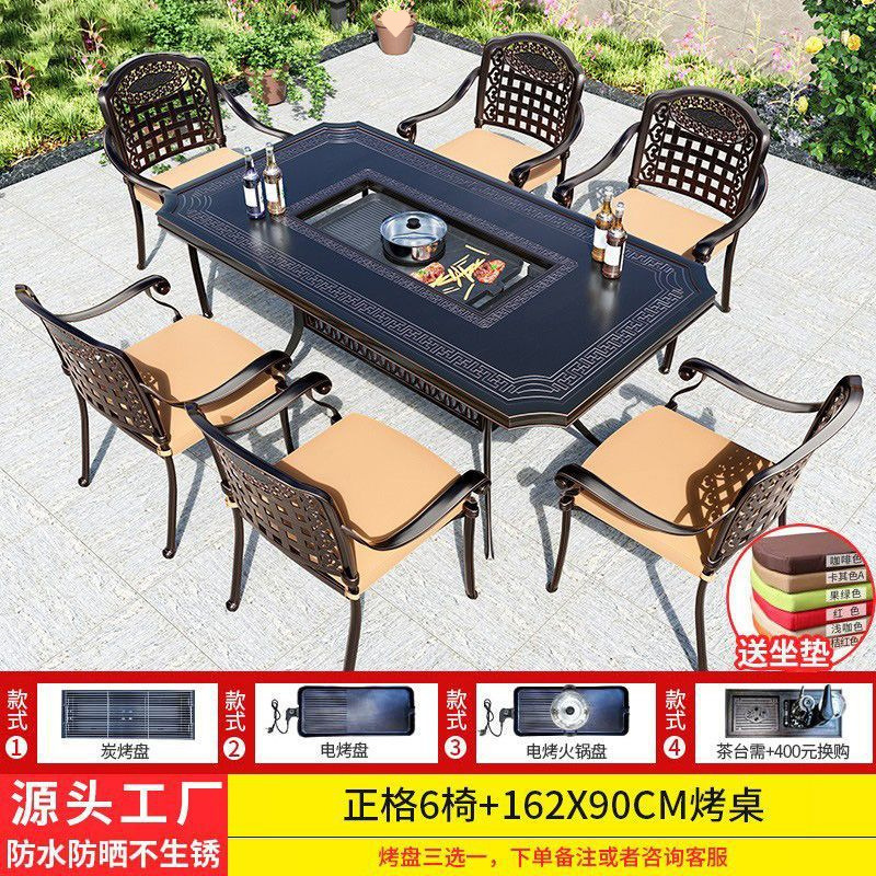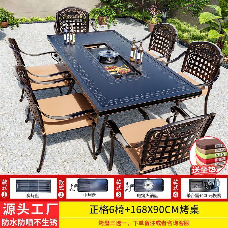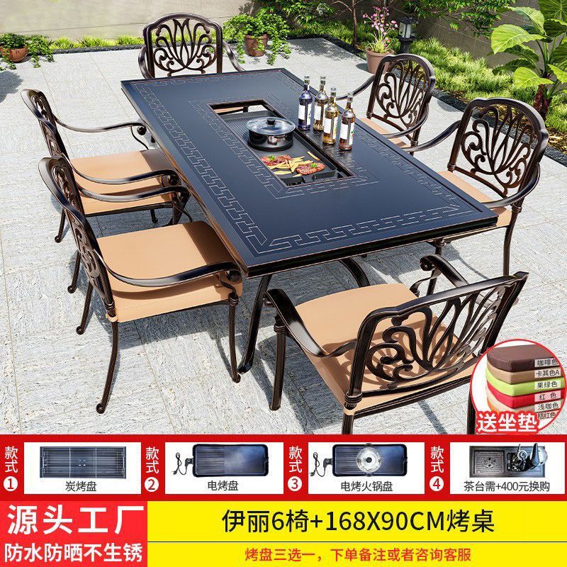 야외 테이블과 의자, 안뜰 바베큐 테이블과 의자, 식탁, 주조 알루미늄, 야외 정원, 철제 가구, 가정용 레저 조합, Foshan