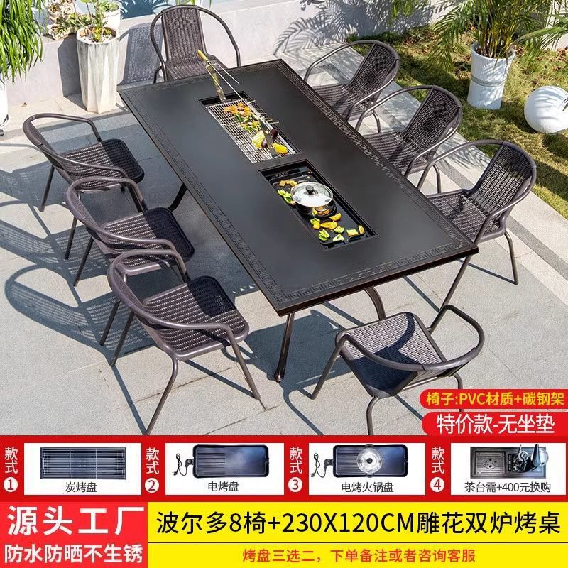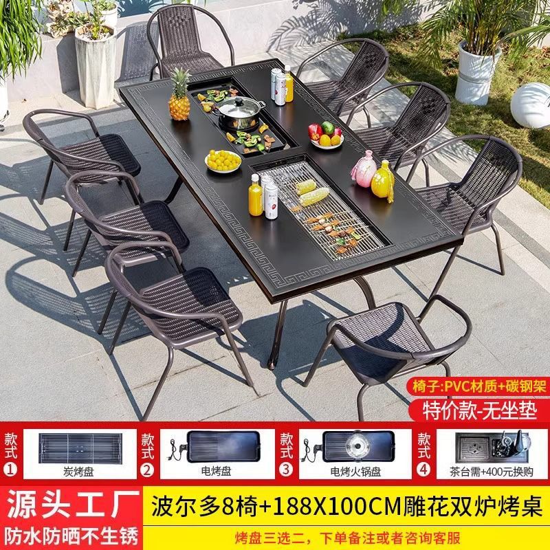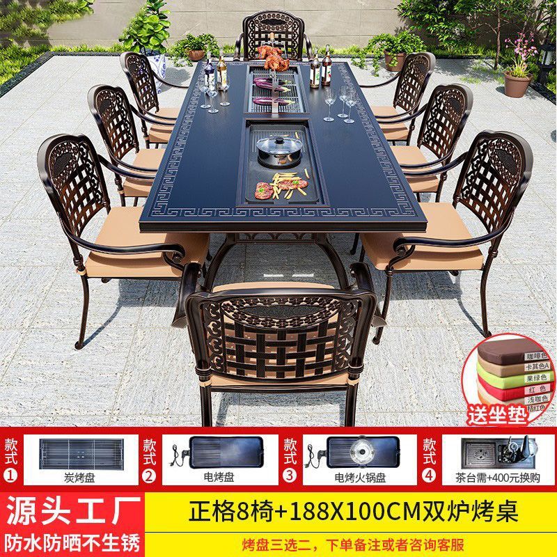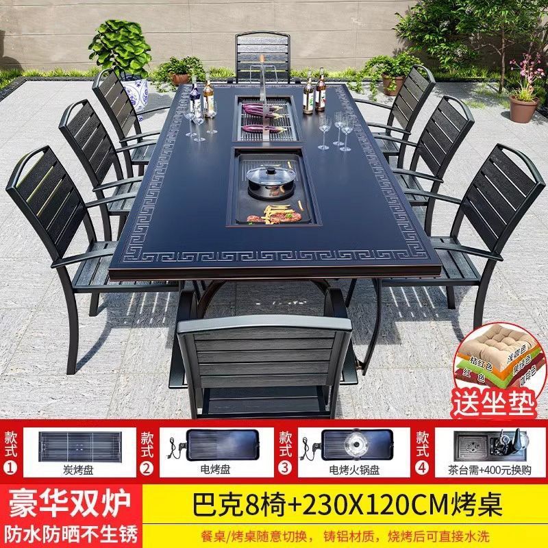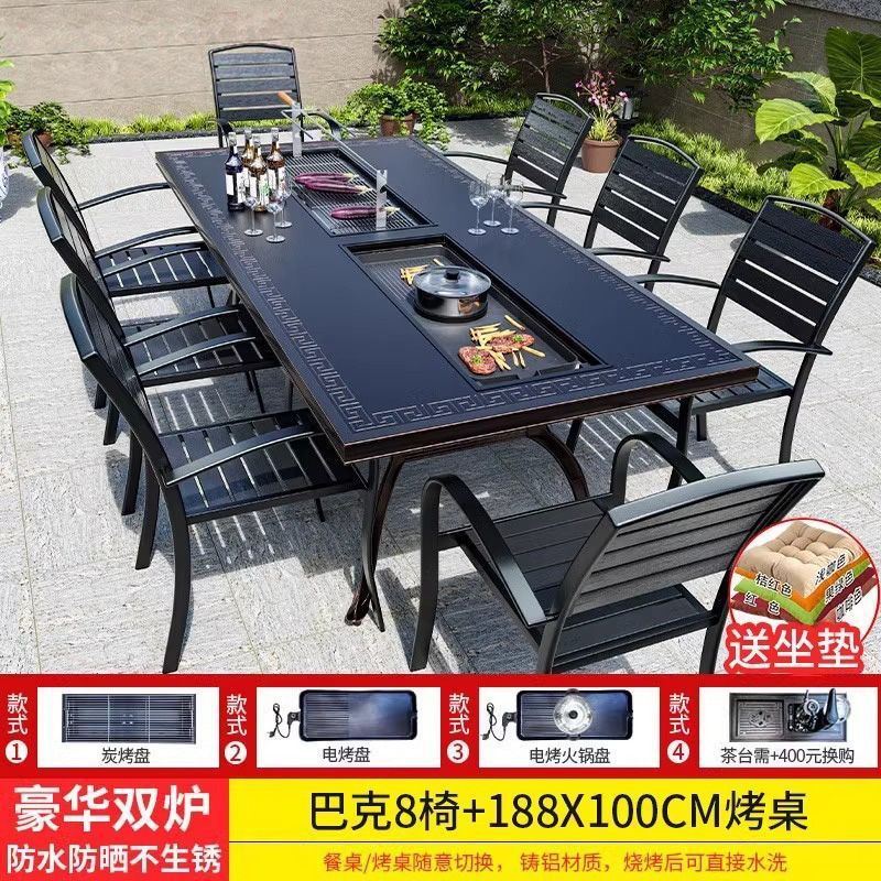 • 일반 의자 8개 + 188*100cm Ruyi 단일 스토브 바베큐 티 테이블