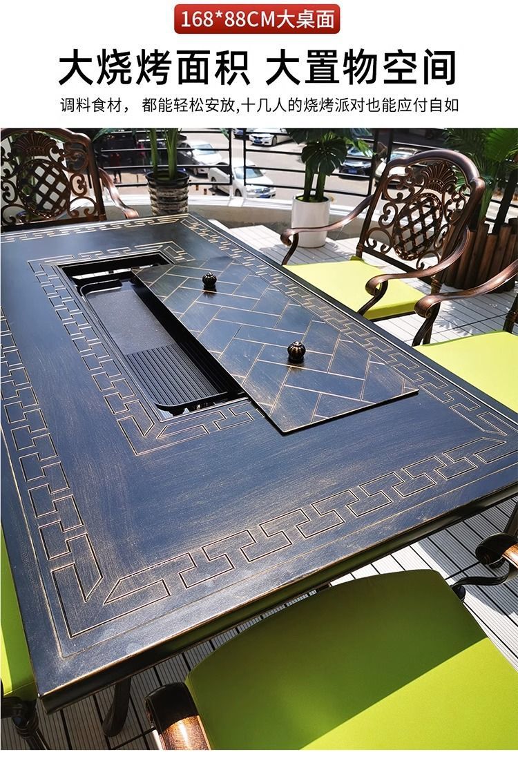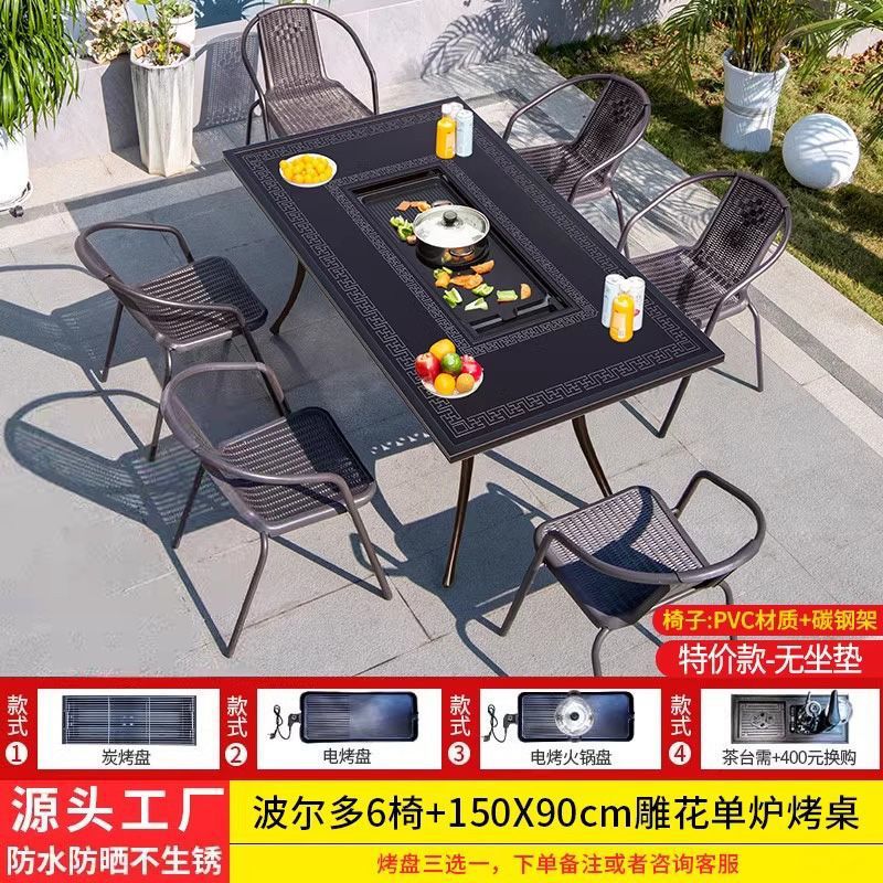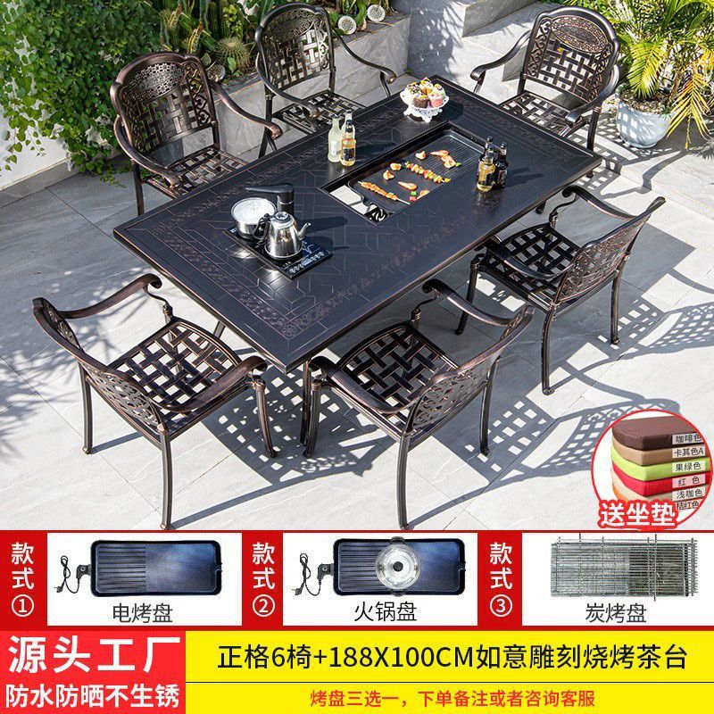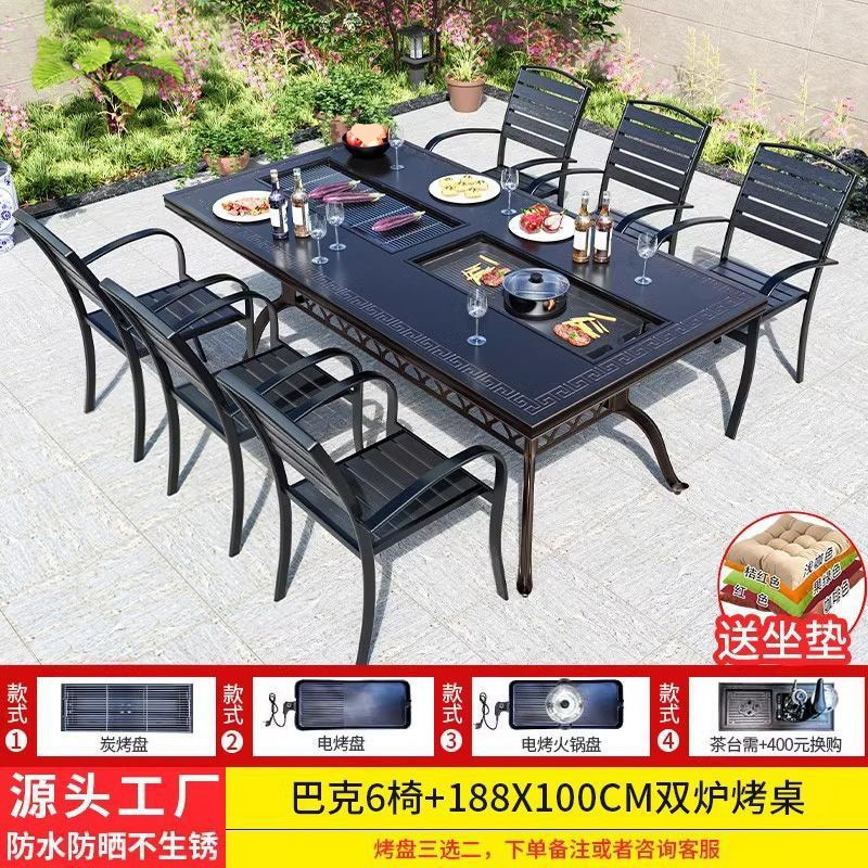 • 6개의 버클 의자 + 188*100cm Ruyi 단일 스토브 바베큐 티 테이블