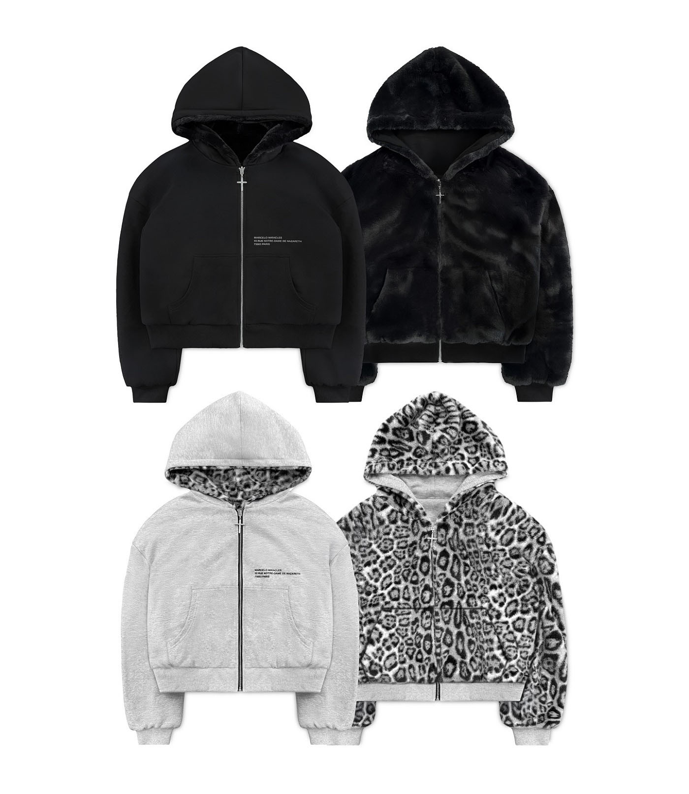 유럽과 미국의 크로스보더 겨울 새로운 레오파드 프린트 리버시블 스웨트셔츠 스트리트 힙합 남성과 여성의 벨벳 두꺼운 후드 스웨트셔츠