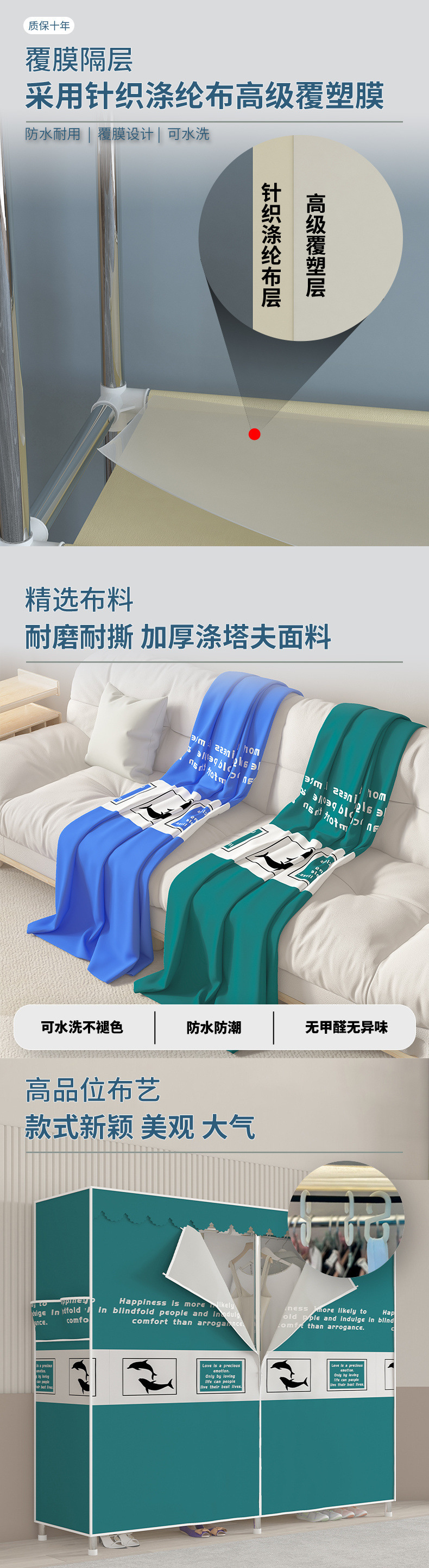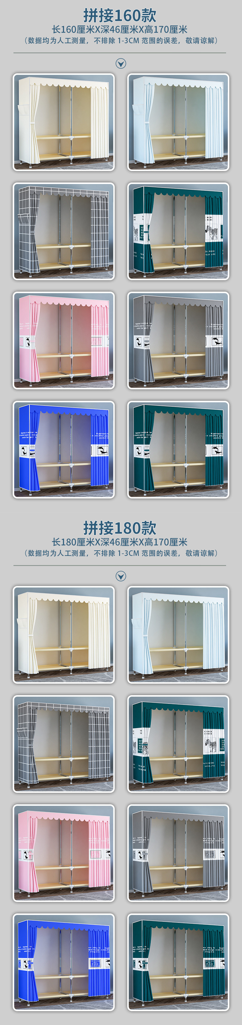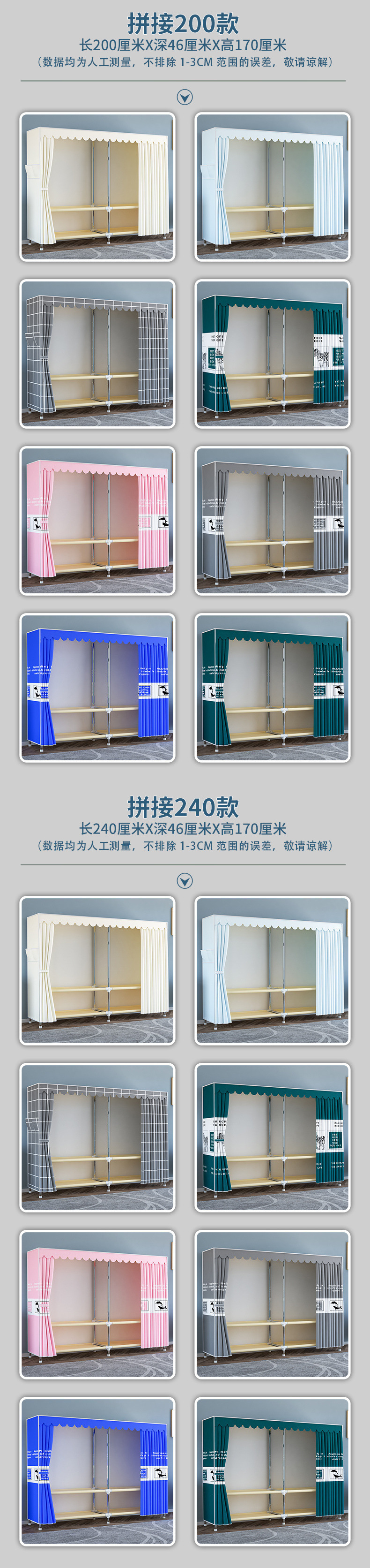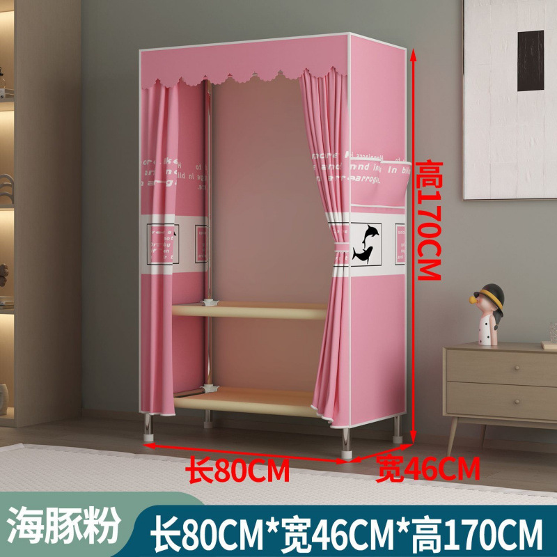 간단한 옷장 임대 집 조립 강력하고 내구성이 뛰어난 강철 파이프 침실 두꺼운 강화 보관 옷장 천 옷장