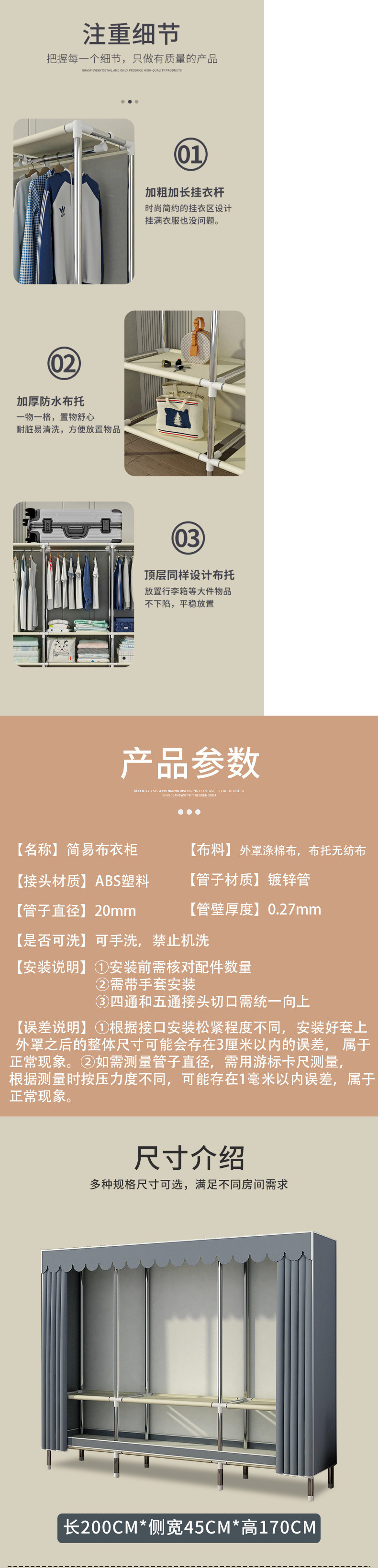 가정용 강철 프레임 간단한 옷장 강철 파이프 두꺼운 강화 강화 침실 내구성 조립 임대 옷장