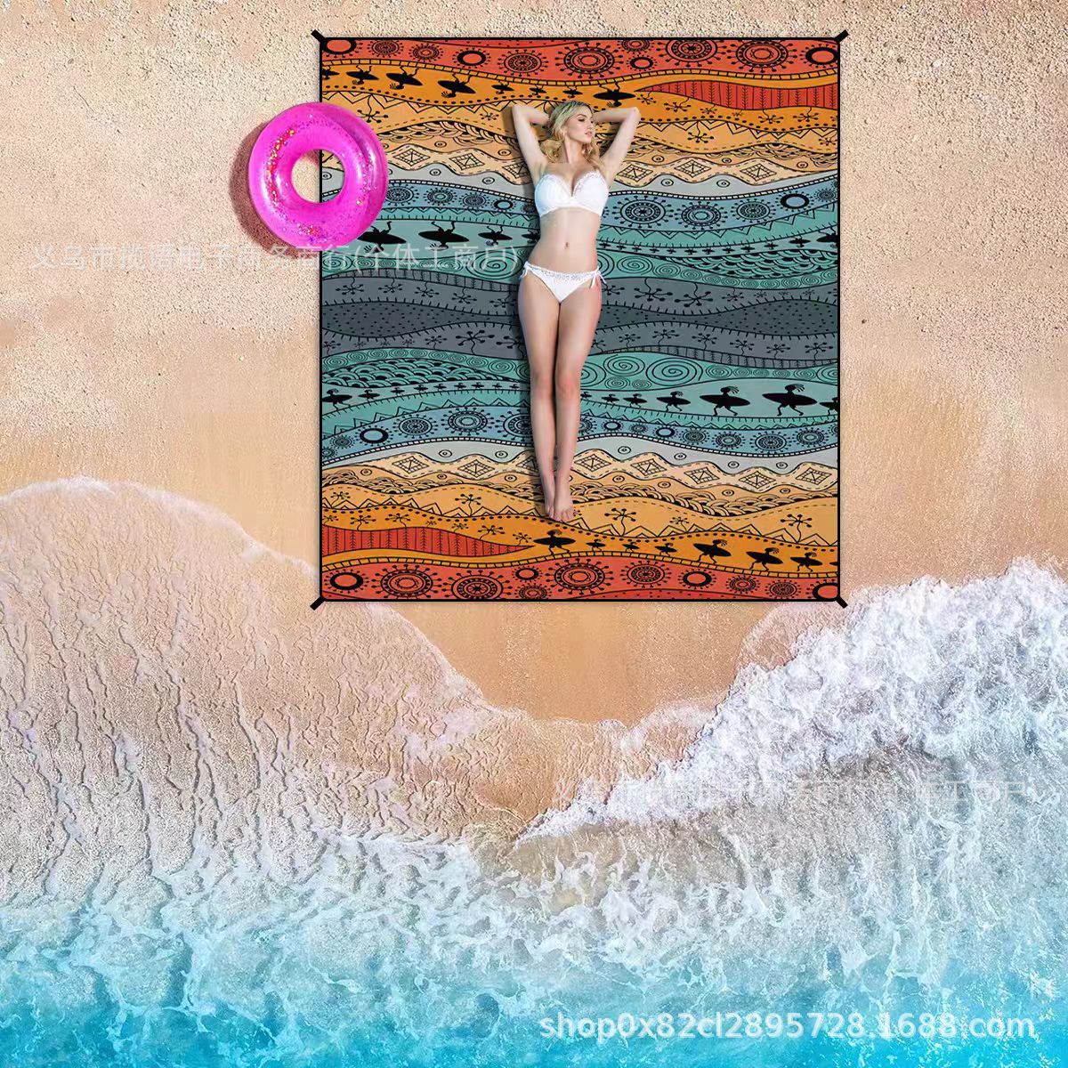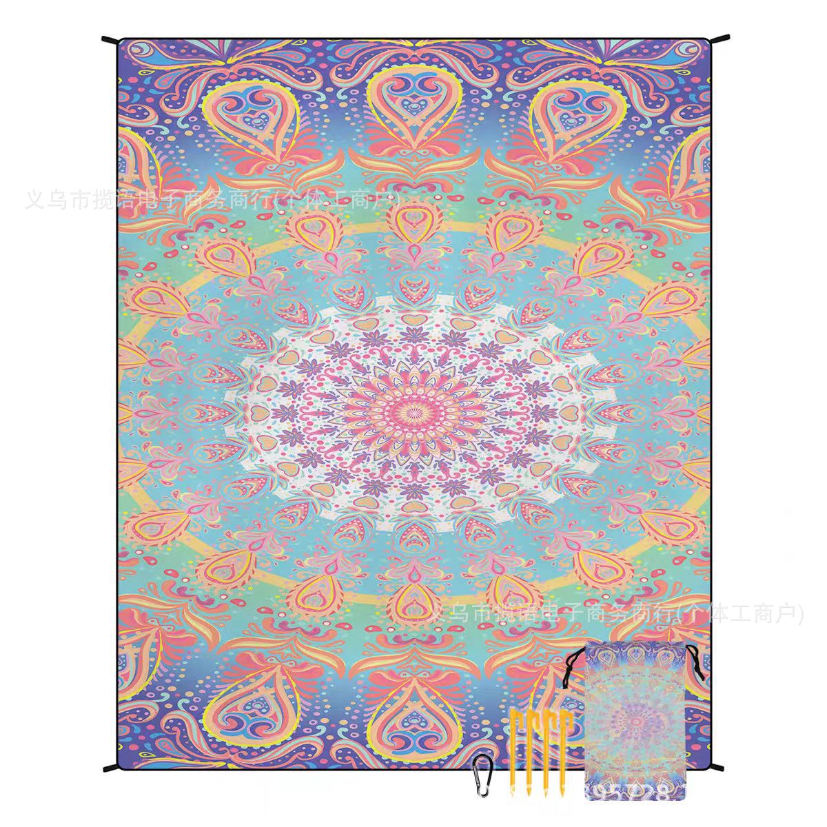 비치 매트 디지털 인쇄 야외 피크닉 매트 초박형 캠핑 매트 방수 및 모래 방지 휴대용 방습 매트 포켓 담요
