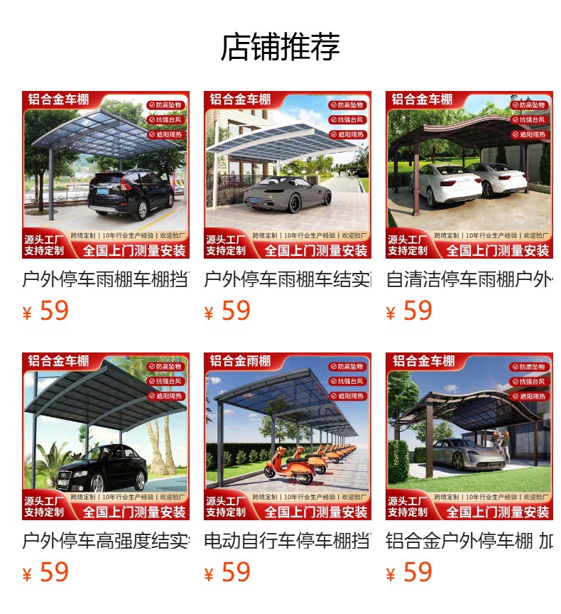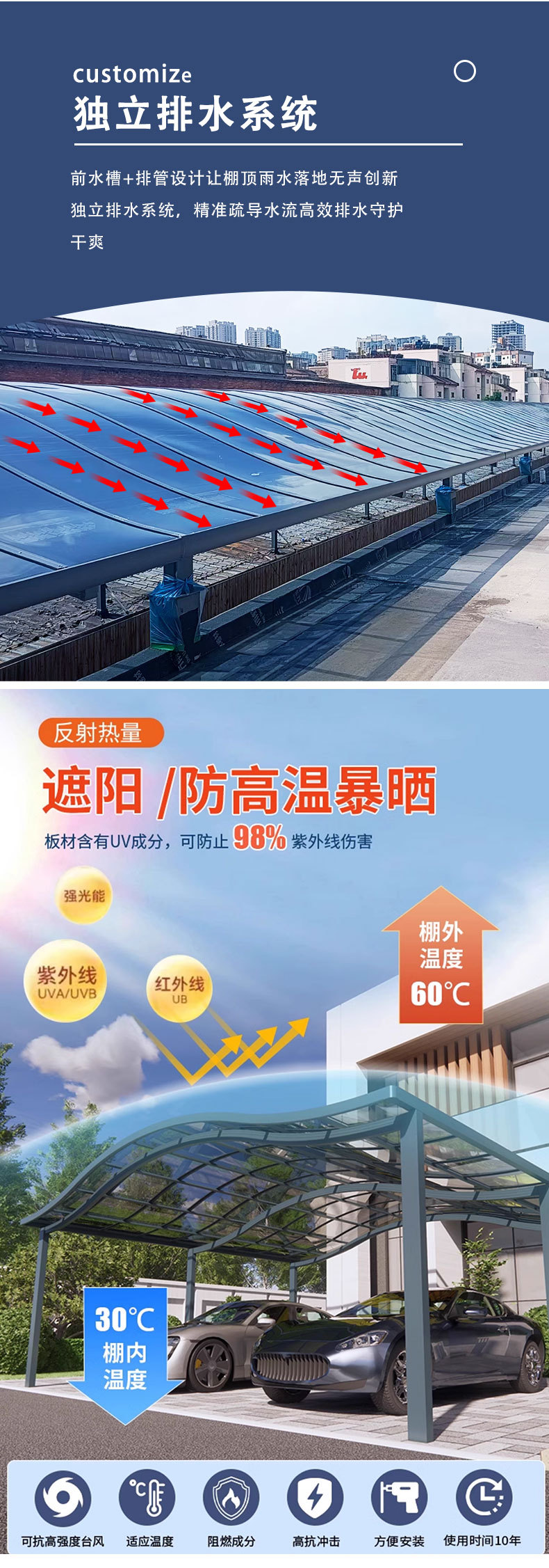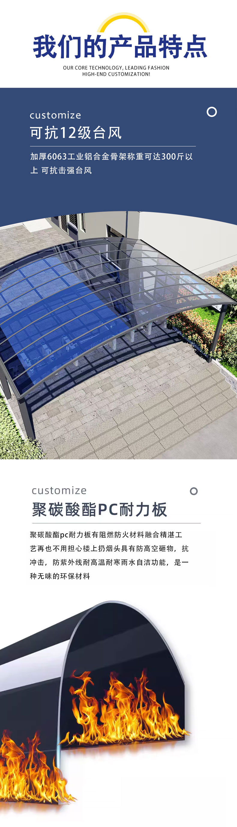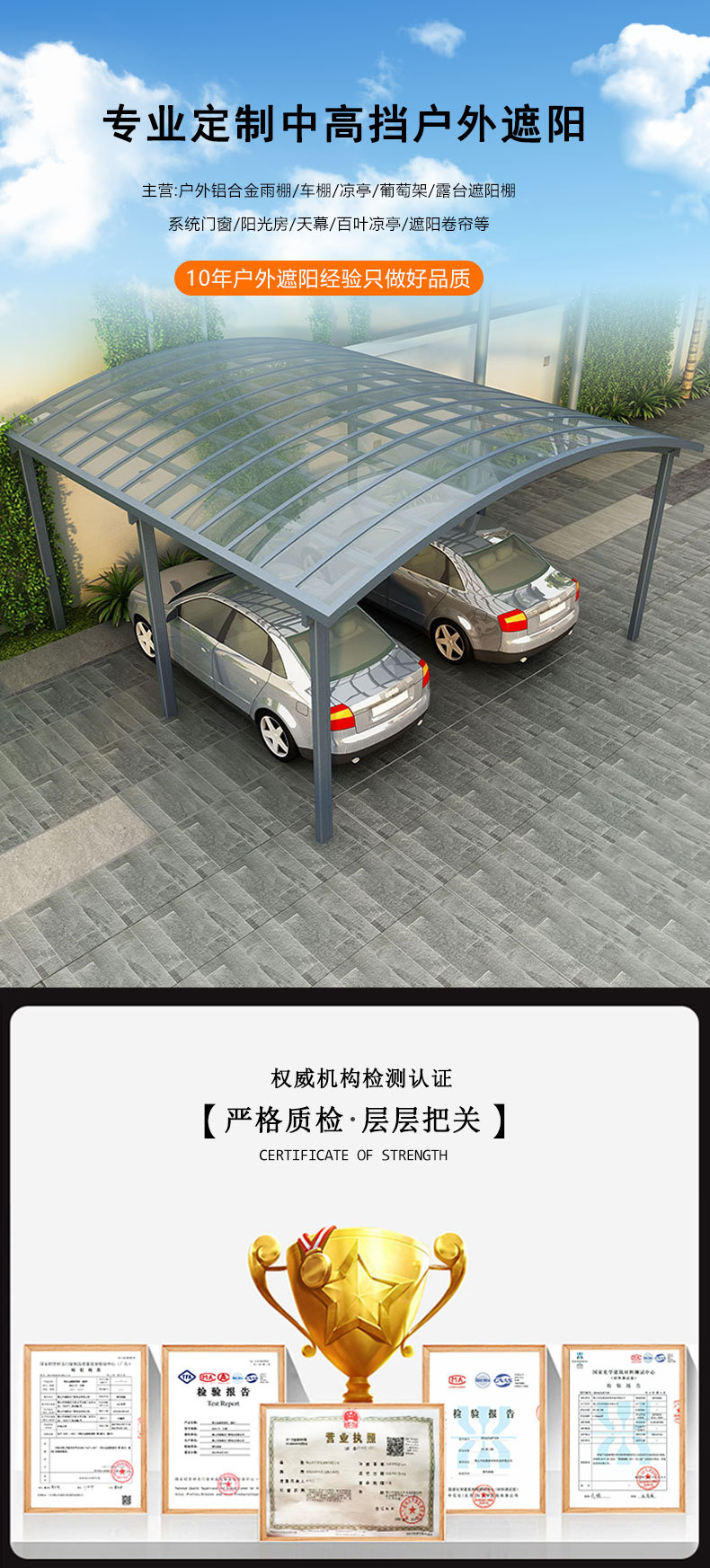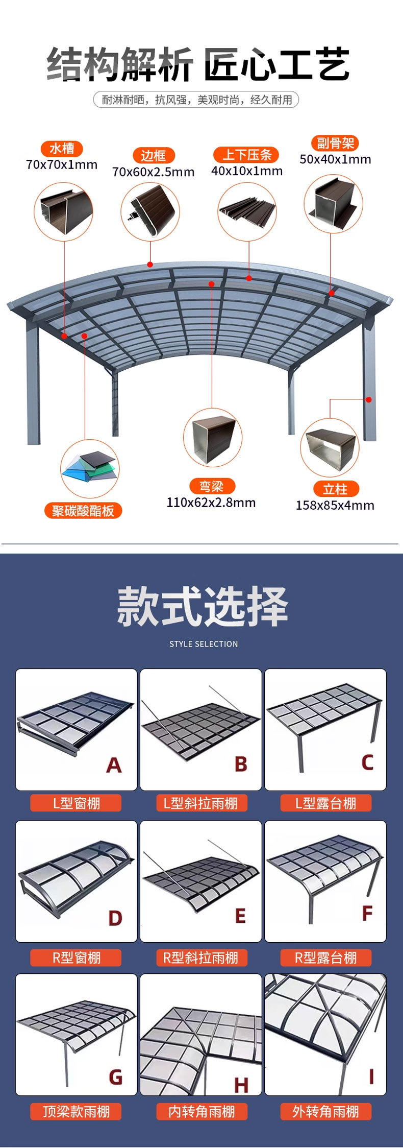 고급 빌라 야외 주차장, 두꺼운 비 차단 차양, 차양, 공동 주차장, 알루미늄 합금 주차장 도매스토어 가기
