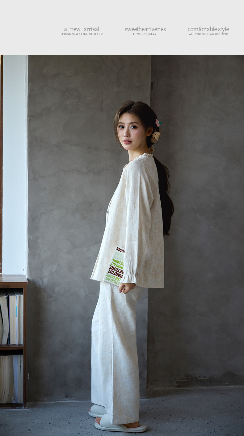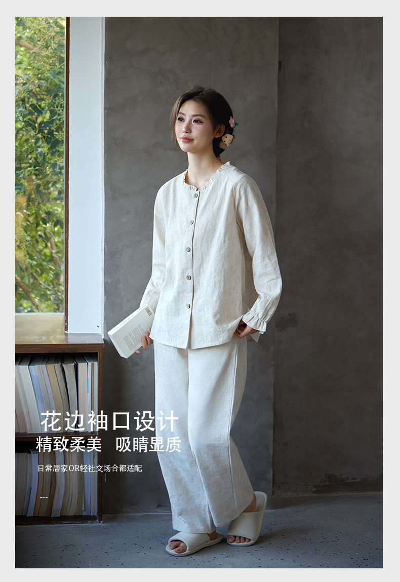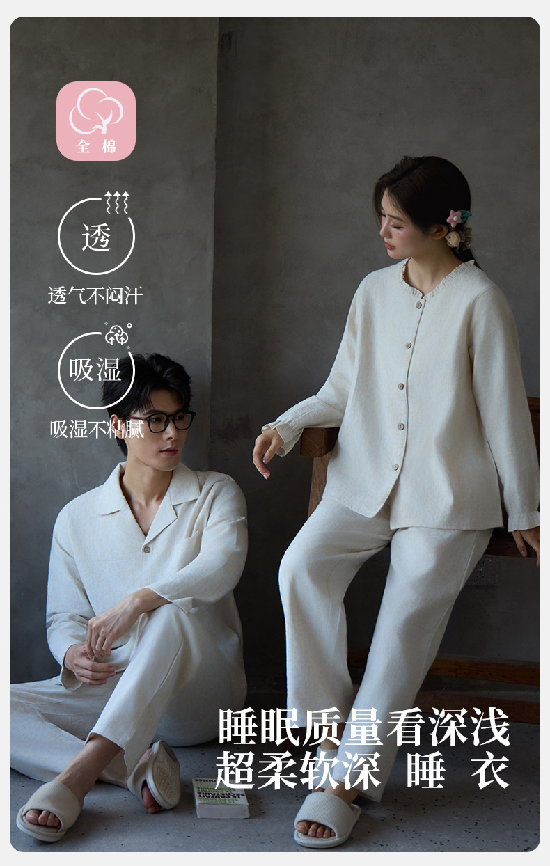남성과 여성을위한 새로운 린넨 솔리드 컬러 코튼 잠옷 여름 봄 가을 긴팔 복고풍 중국 스타일 커플 홈웨어 세트스토어 가기
