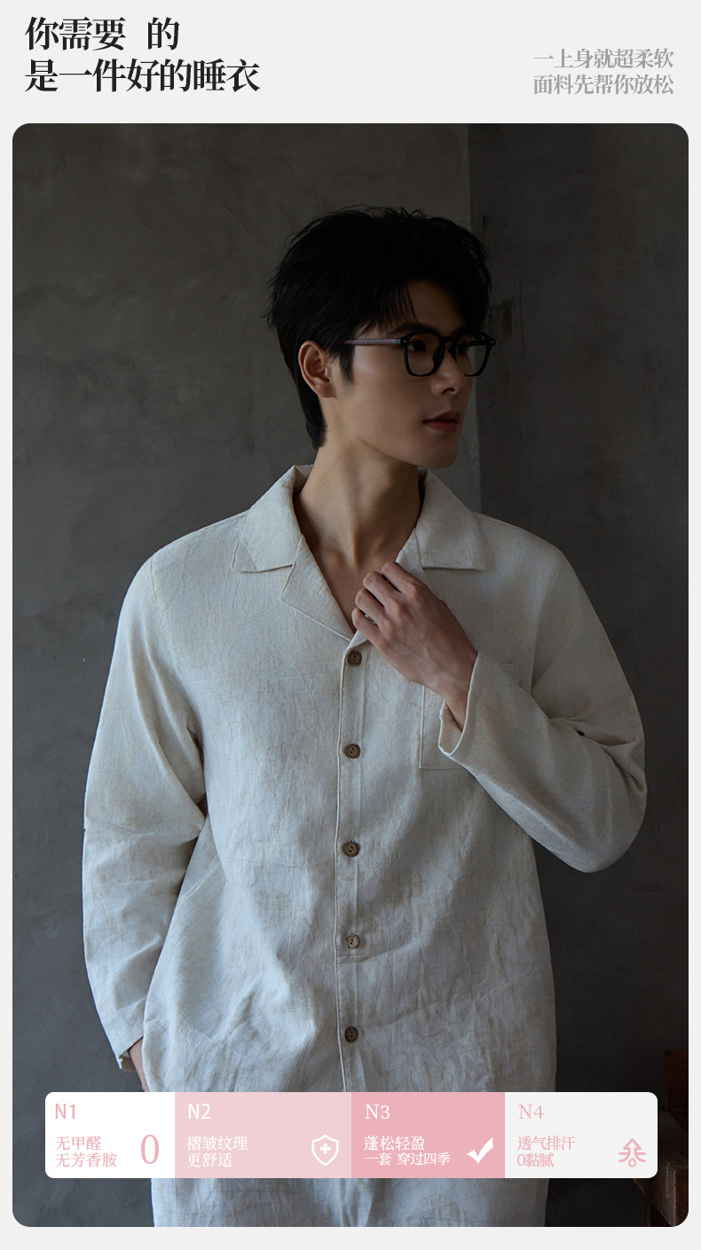 남성과 여성을위한 새로운 린넨 솔리드 컬러 코튼 잠옷 여름 봄 가을 긴팔 복고풍 중국 스타일 커플 홈웨어 세트