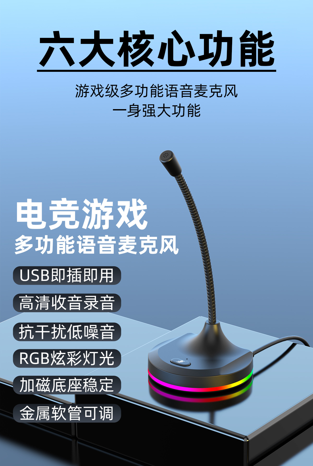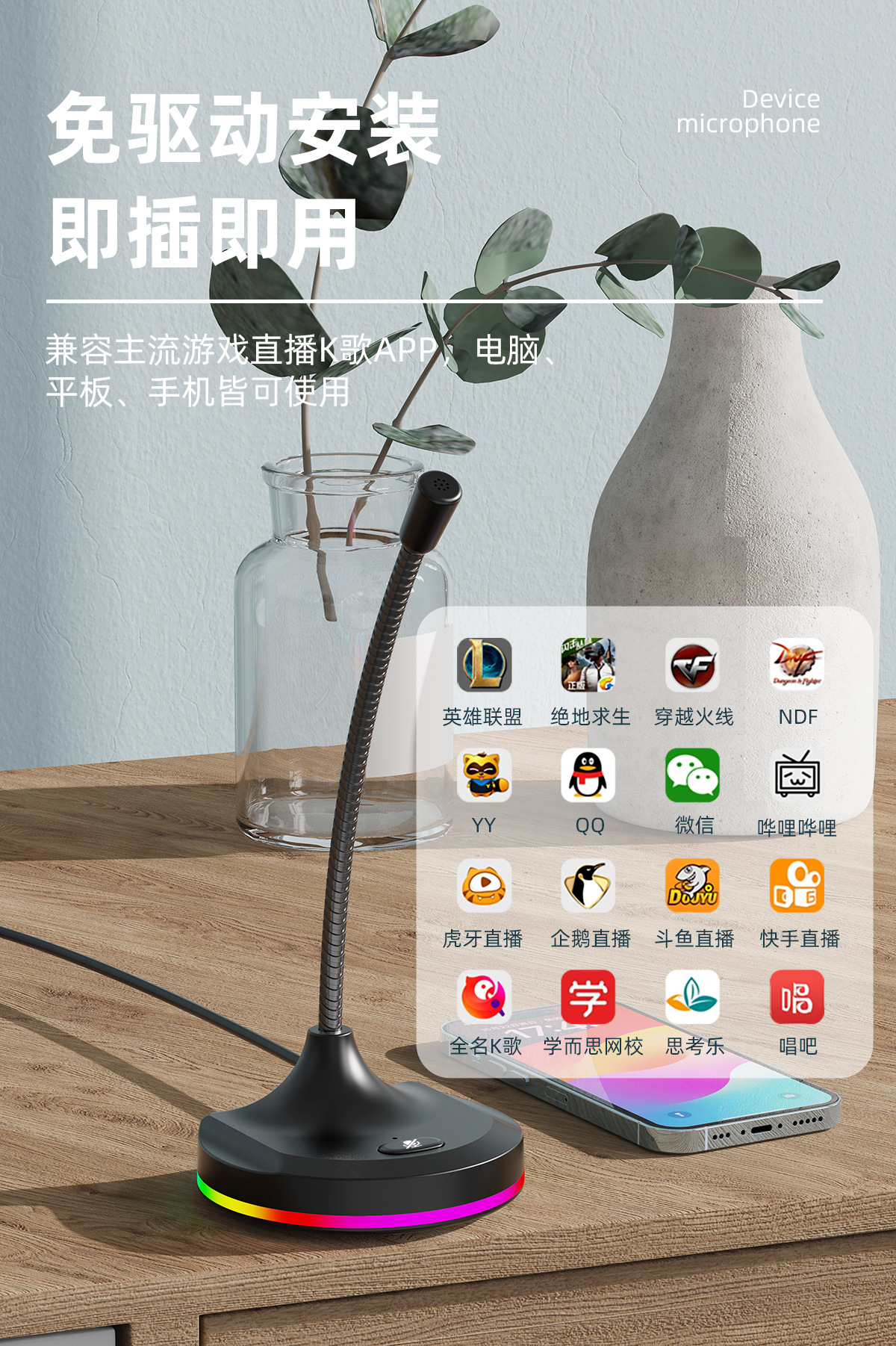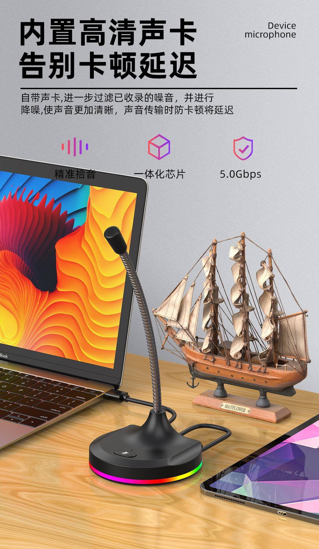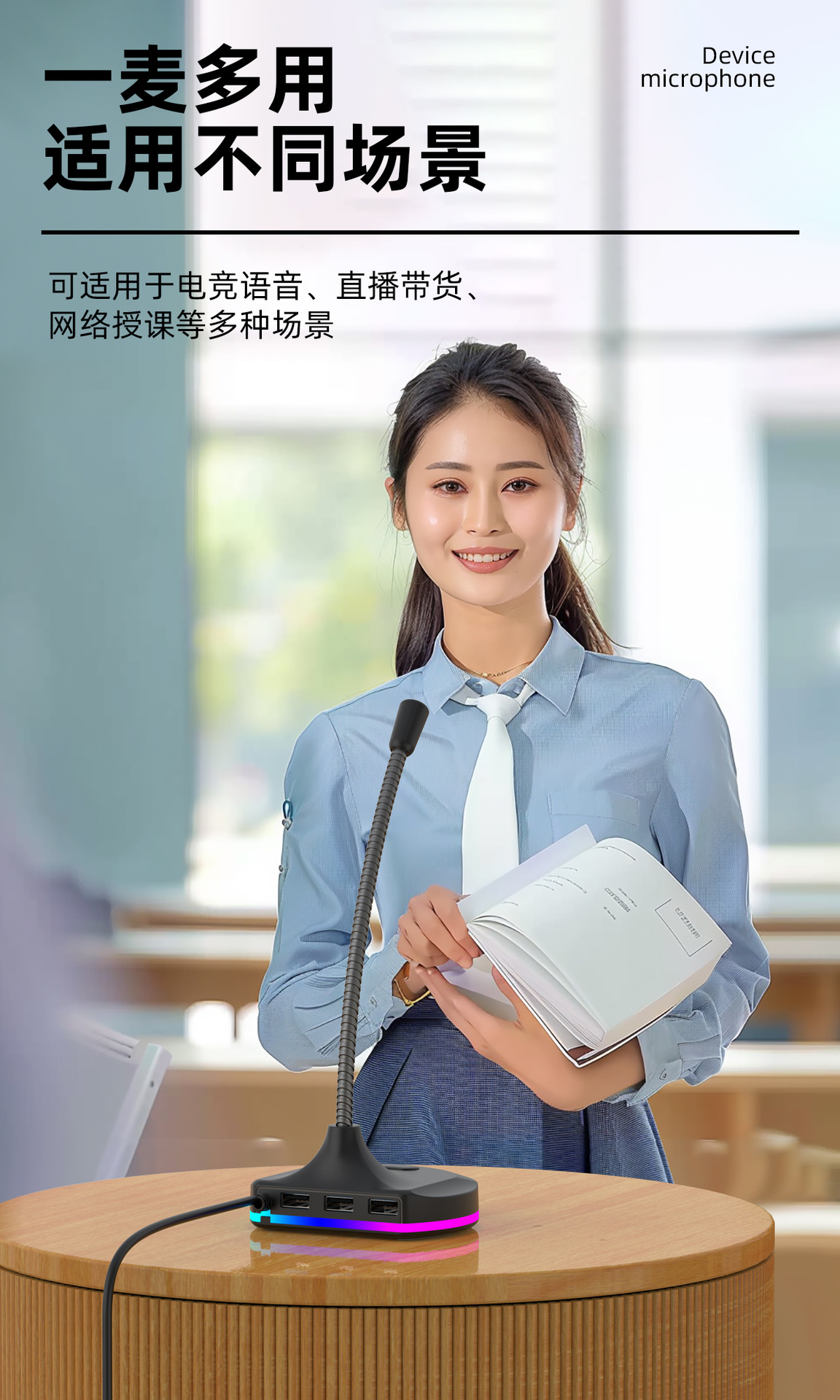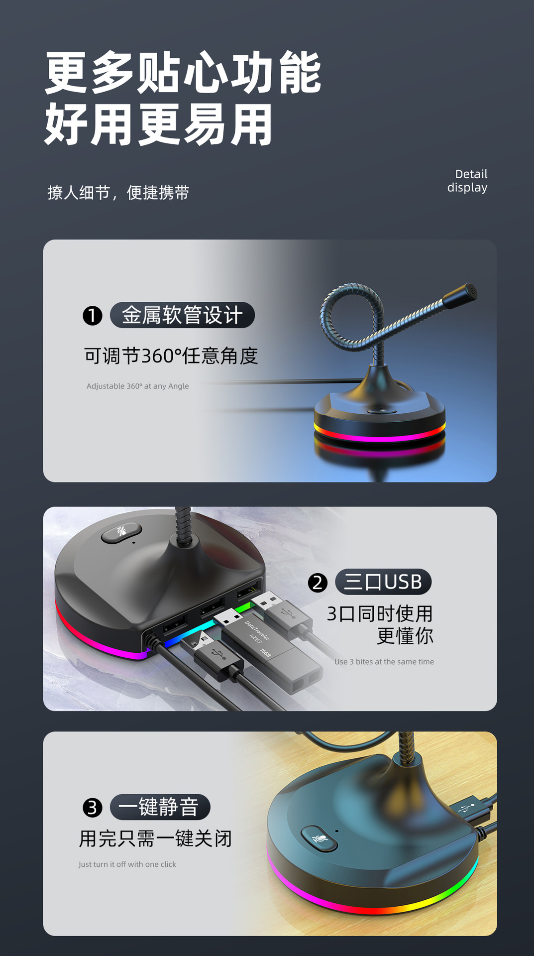 새로운 RGB 다채로운 빛 다채로운 마이크 게임 라이브 방송 3 포트 USB 마이크 사무실 데스크탑 컴퓨터 허브스토어 가기