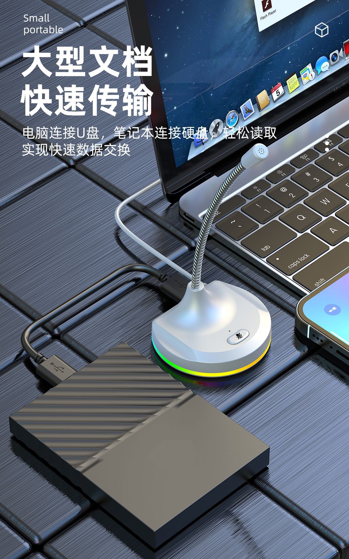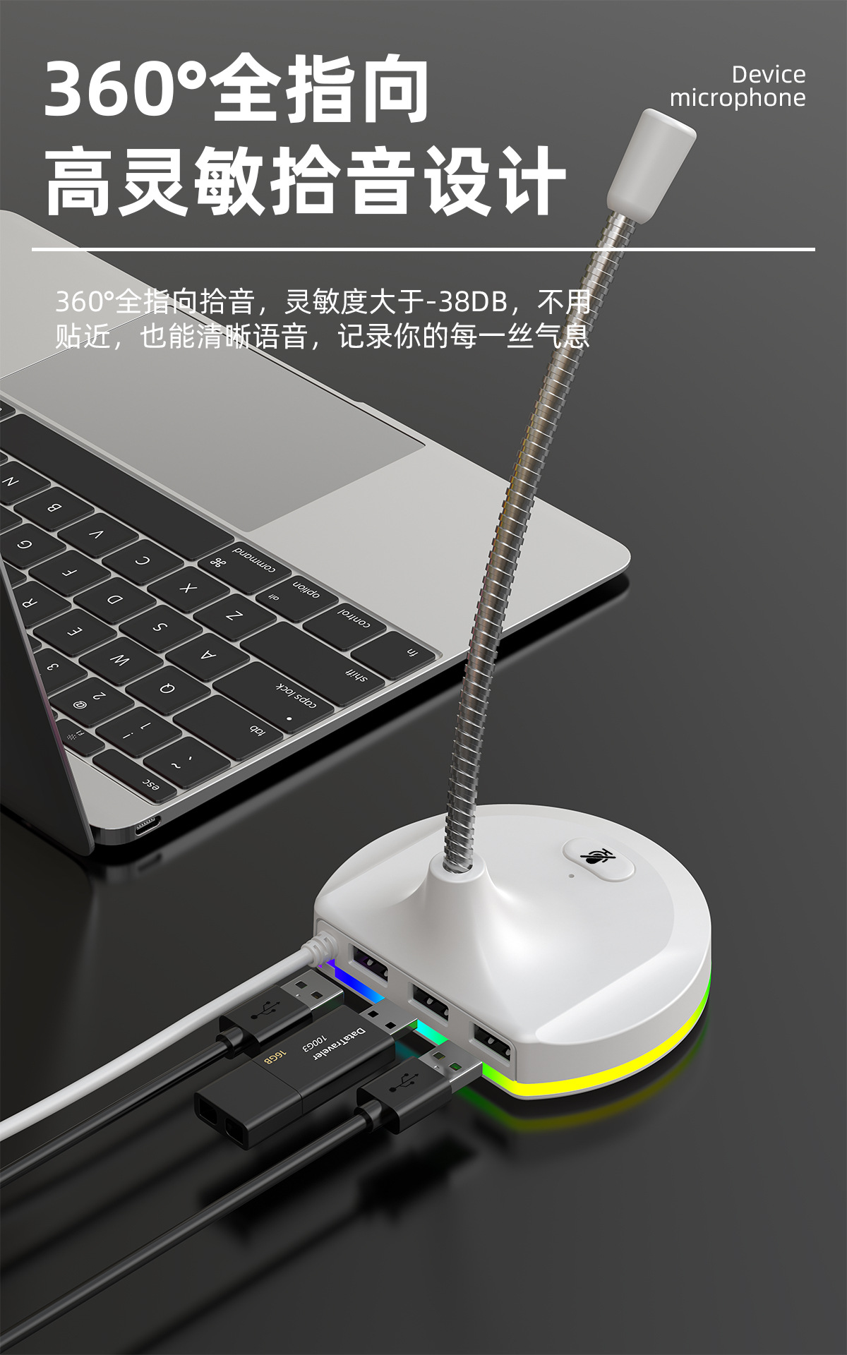 새로운 RGB 다채로운 빛 다채로운 마이크 게임 라이브 방송 3 포트 USB 마이크 사무실 데스크탑 컴퓨터 허브