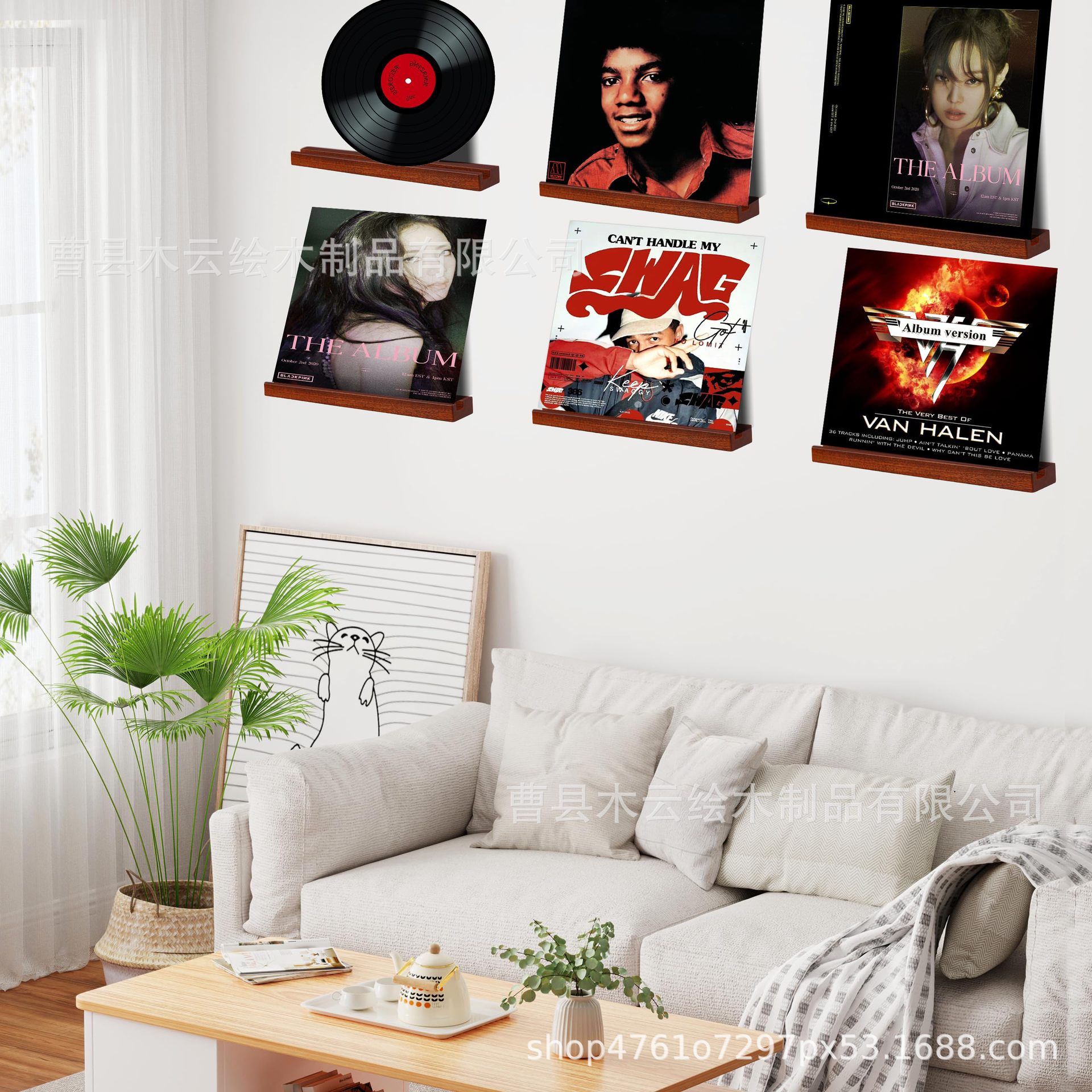 국경 간 복고풍 플로팅 선반 벽걸이 형 레코드 보관 랙 단단한 나무 브래킷 나무 비닐 레코드 랙