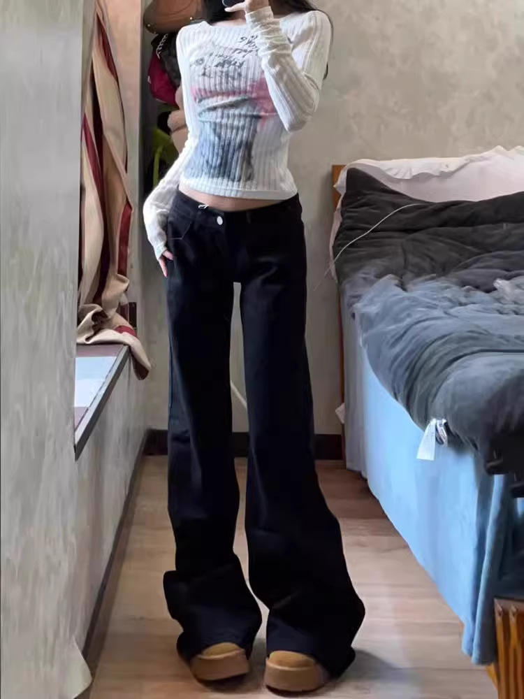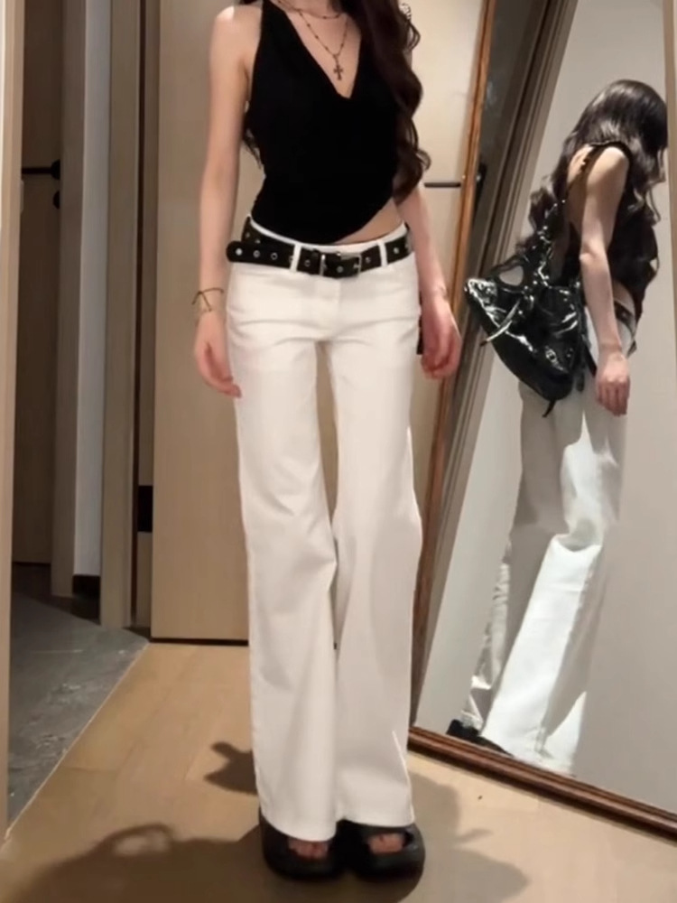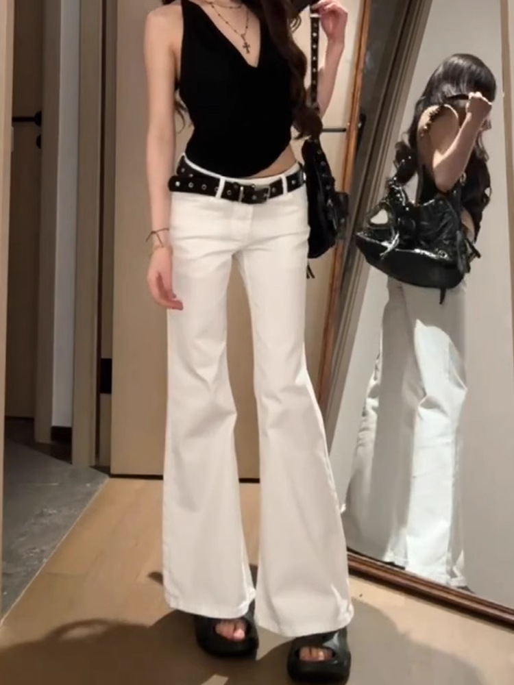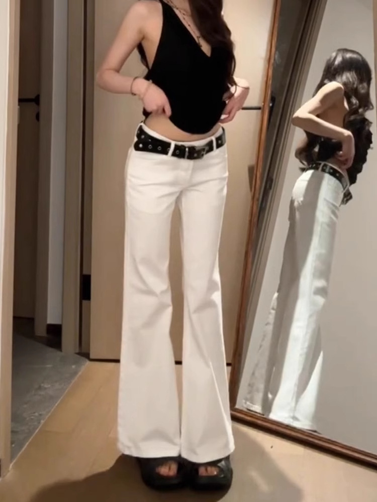 여성용 화이트 플레어 청바지 2025 가을 로우 웨이스트 슬림 루즈 바닥 길이 와이드 레그 마이크로 플레어 롱 팬츠스토어 가기