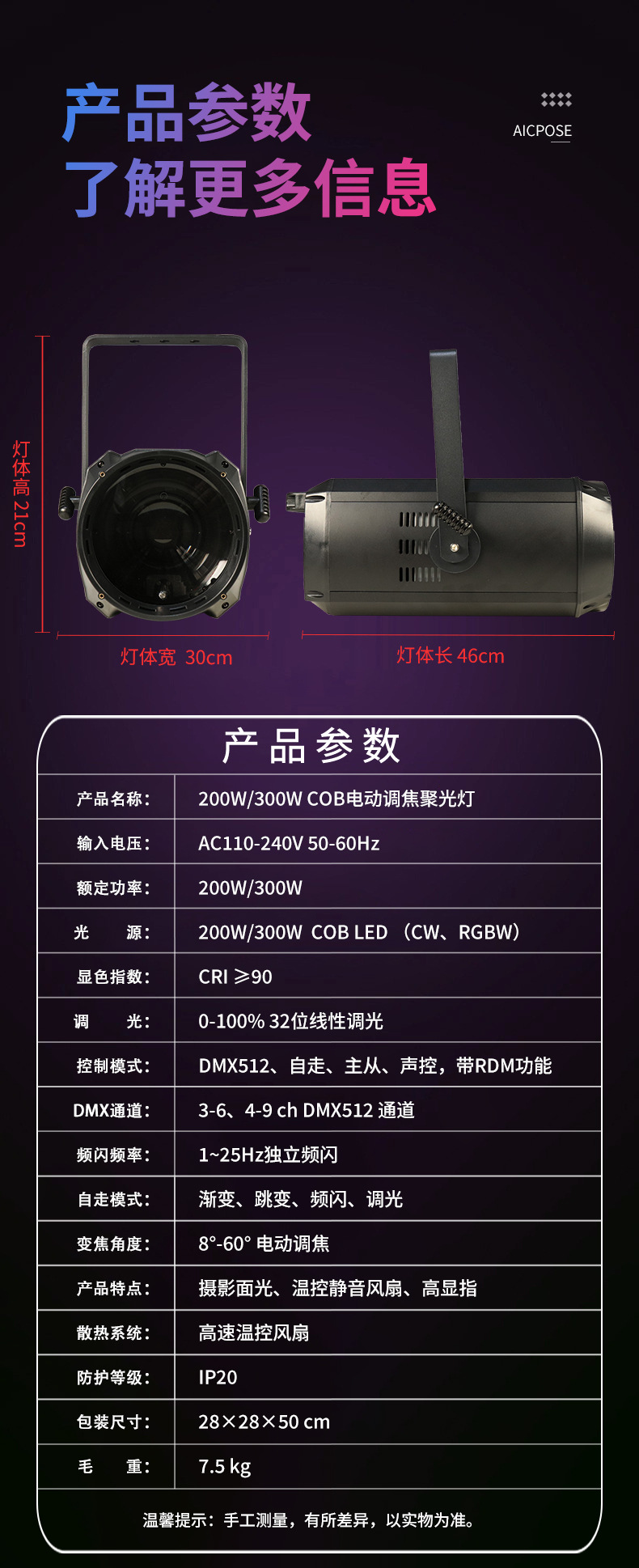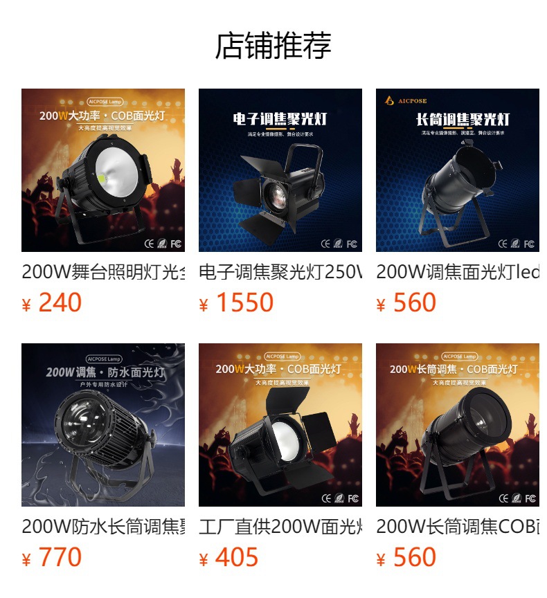 300W 고휘도 COB 포커싱 표면 조명 무대 조명 스포트라이트 착색 채우기 콘서트 사진 회의실스토어 가기