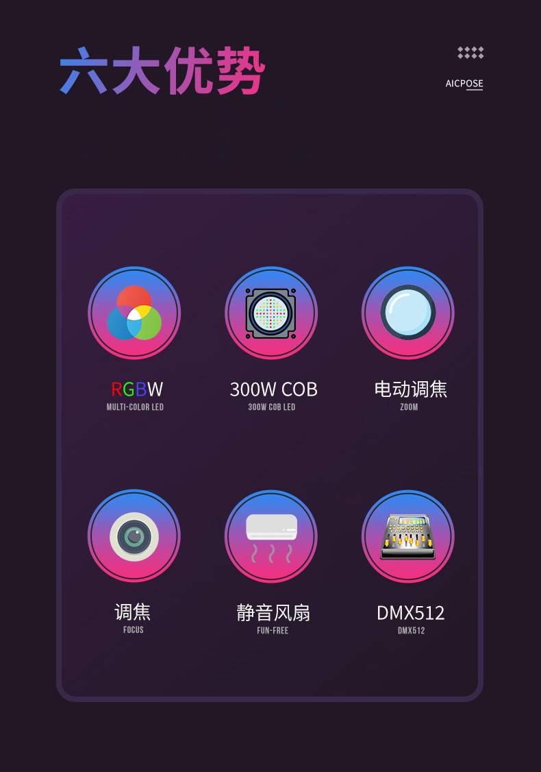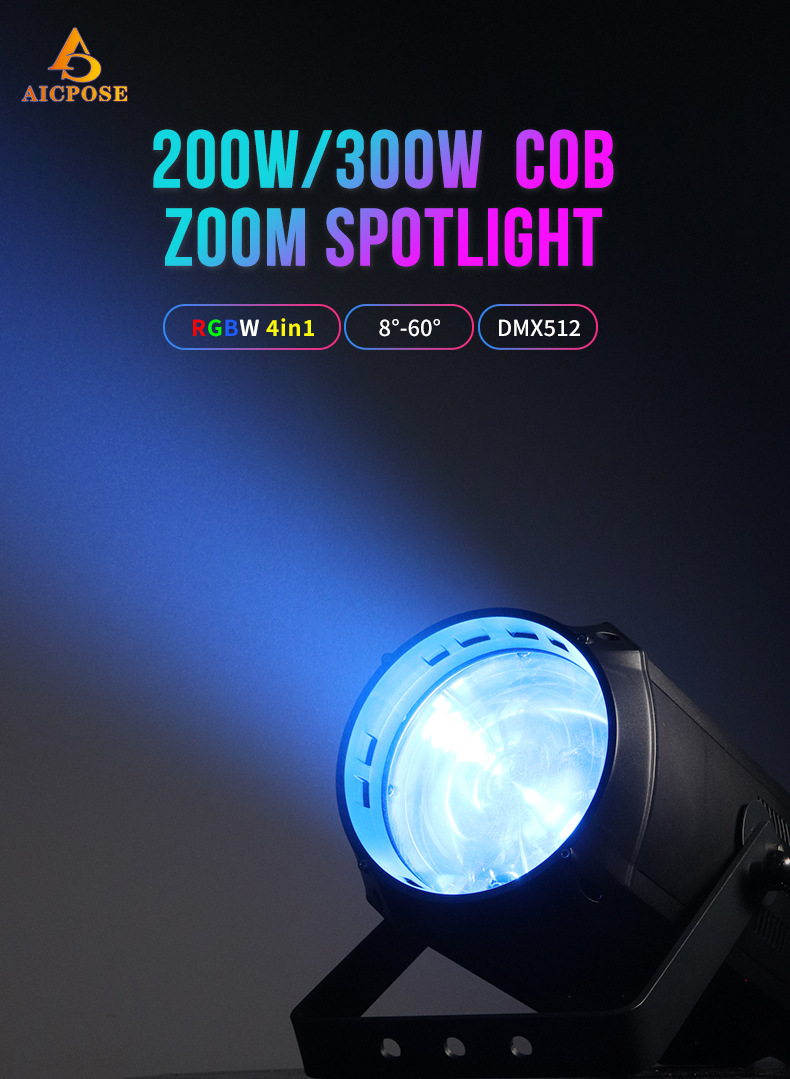300W 고휘도 COB 포커싱 표면 조명 무대 조명 스포트라이트 착색 채우기 콘서트 사진 회의실