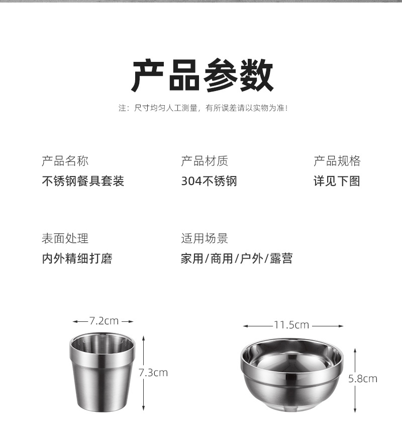 304 스테인레스 스틸 식기 그릇과 접시 세트 휴대용 여행 야외 캠핑 홈 주방 접시 접시 젓가락 수프 그릇