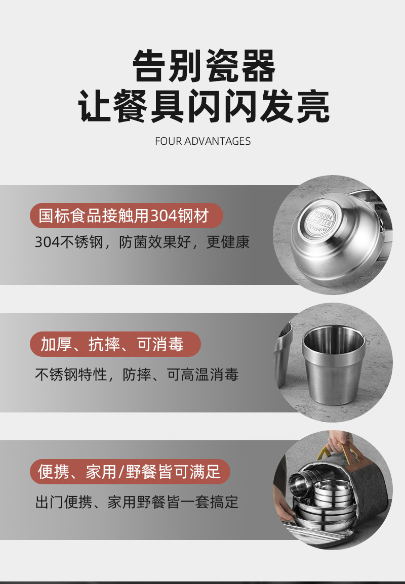 304 스테인레스 스틸 식기 그릇과 접시 세트 휴대용 여행 야외 캠핑 홈 주방 접시 접시 젓가락 수프 그릇스토어 가기