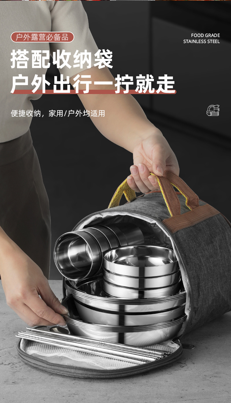 • [풀 304 스테인레스 스틸] 12종 세트 + 보관 가방(그릇, 접시, 세면대 세트) 포션 테스트 지원