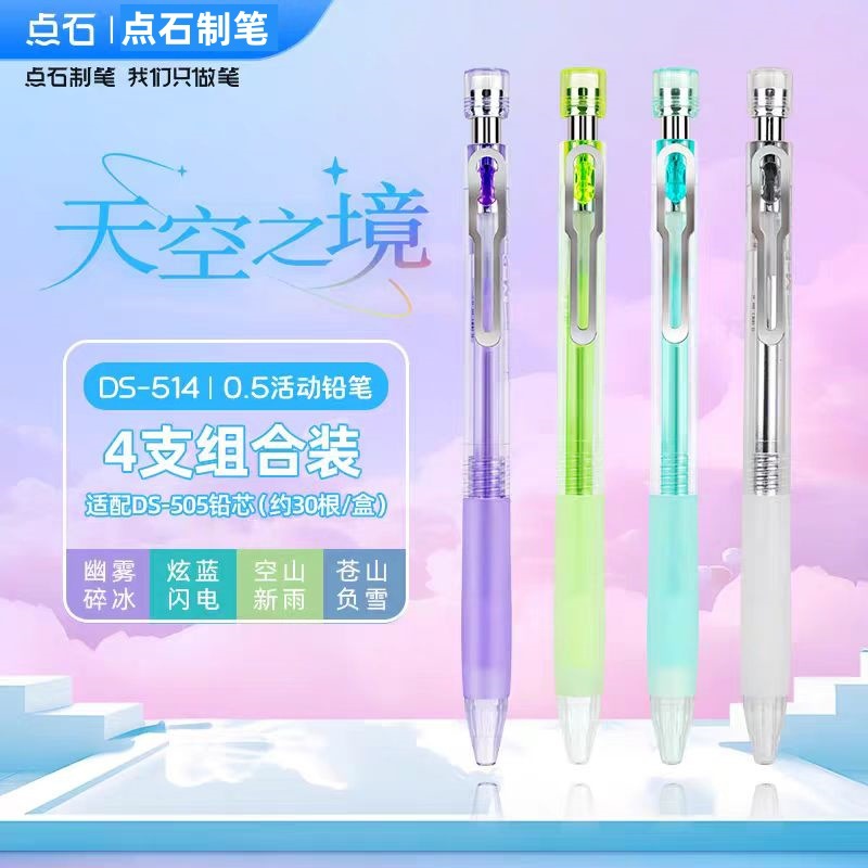 Dianshi 자동 연필 새로운 스카이랜드에는 고무 샤프 펜슬 미끄럼 방지 그립 0.5mmDS-514가 함께 제공됩니다.스토어 가기