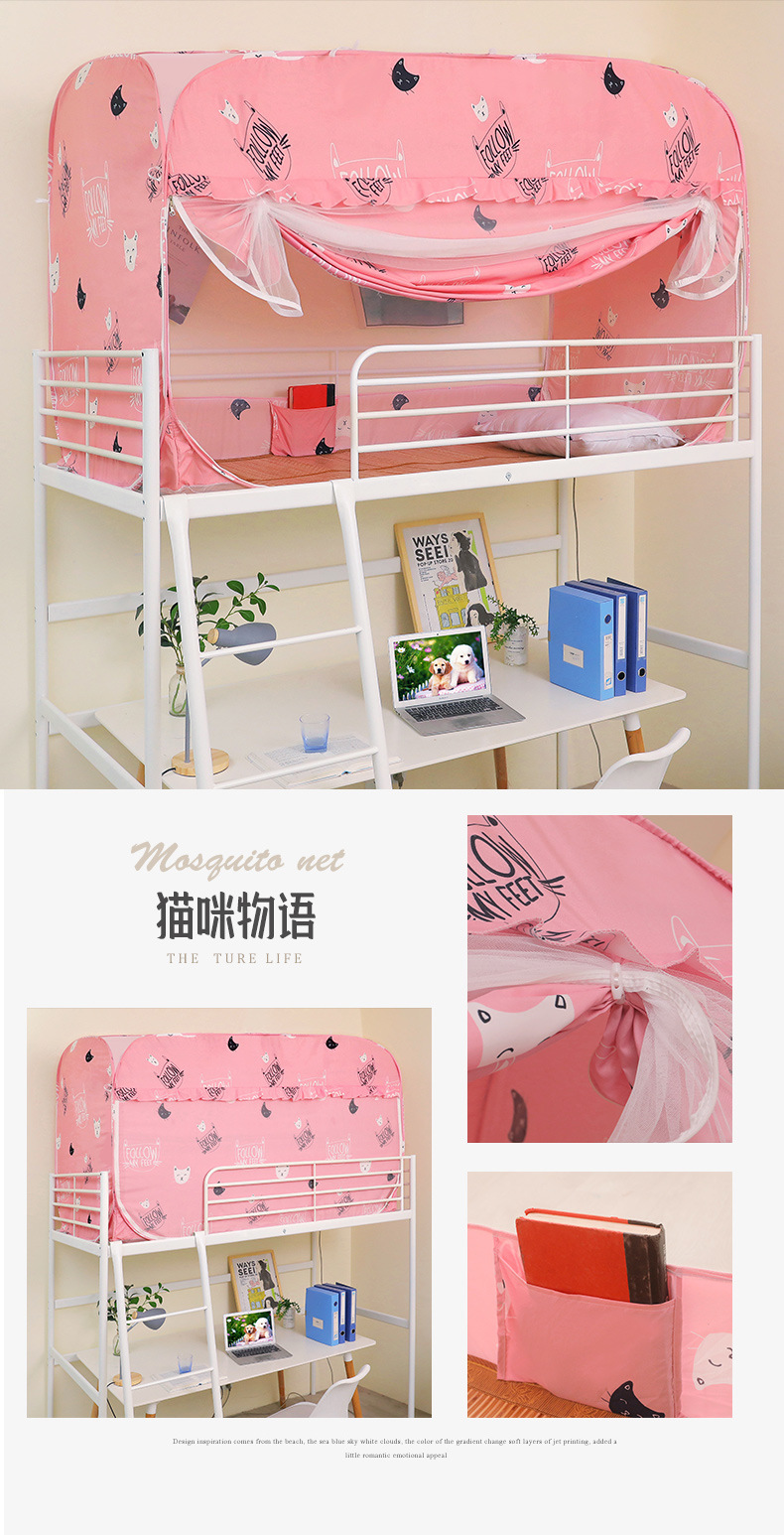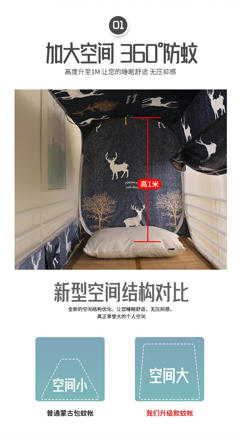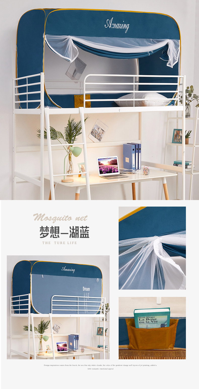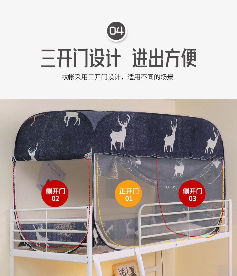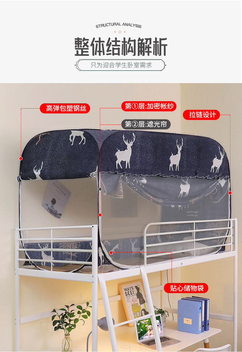 학생 접이식 몽골리안 돔 기숙사 이층 침대 지퍼 모델 전체 그늘망 설치가 필요 없는 모기장 차광 및 방진 침대 커튼스토어 가기