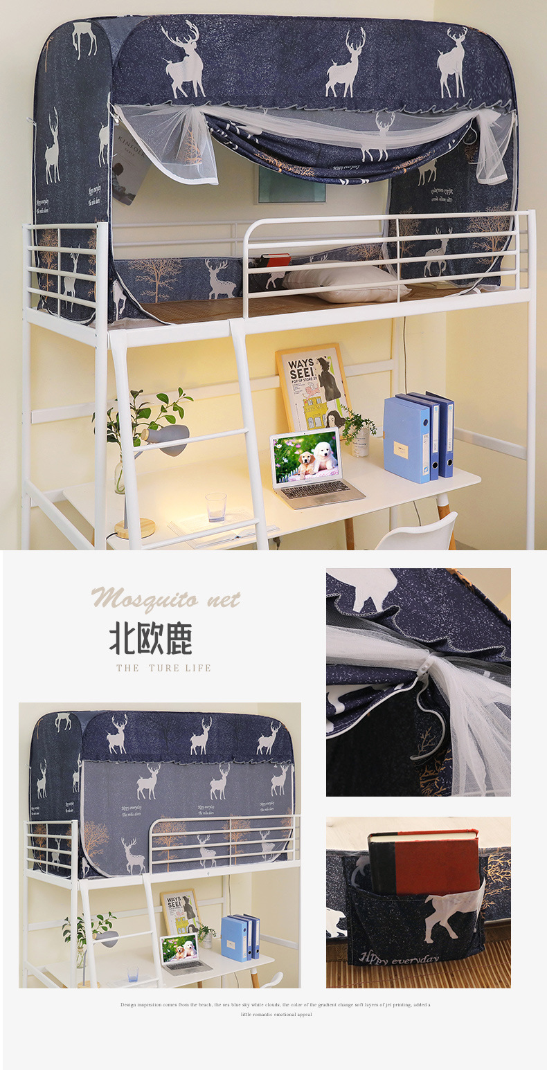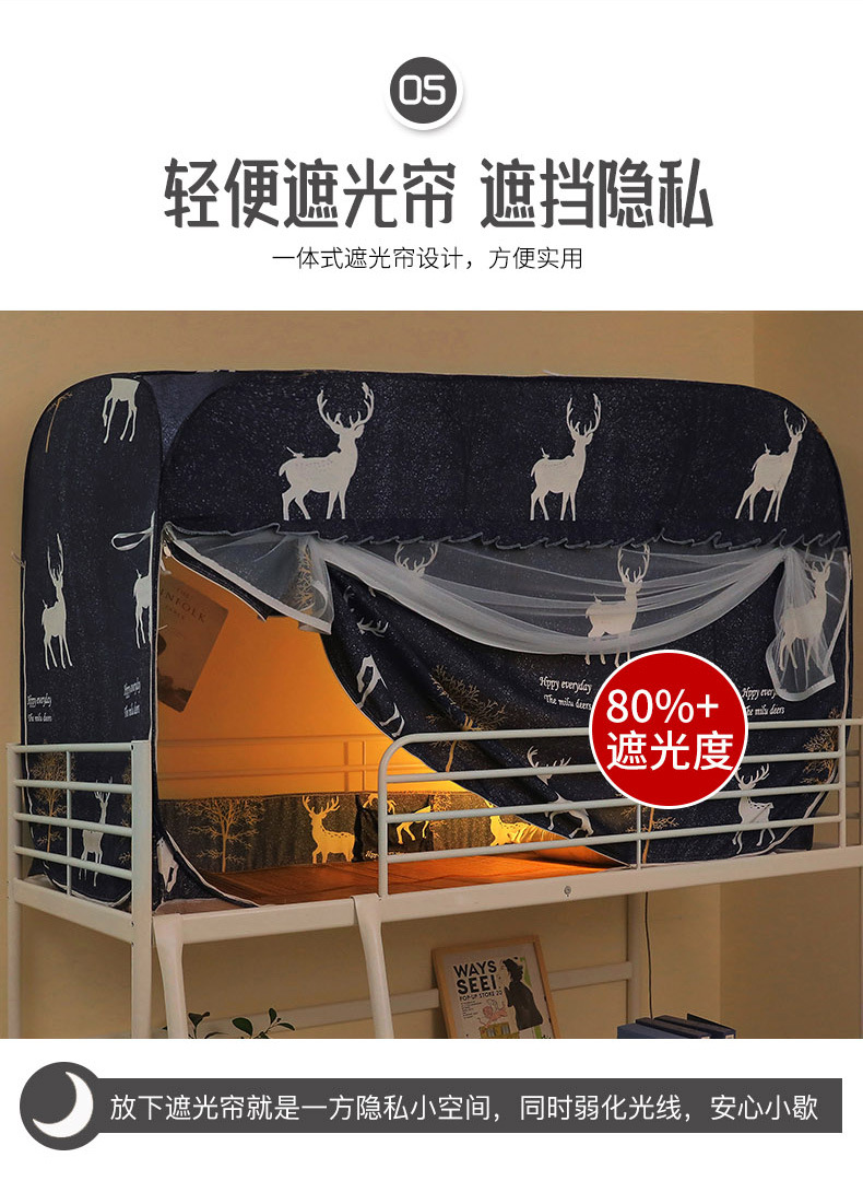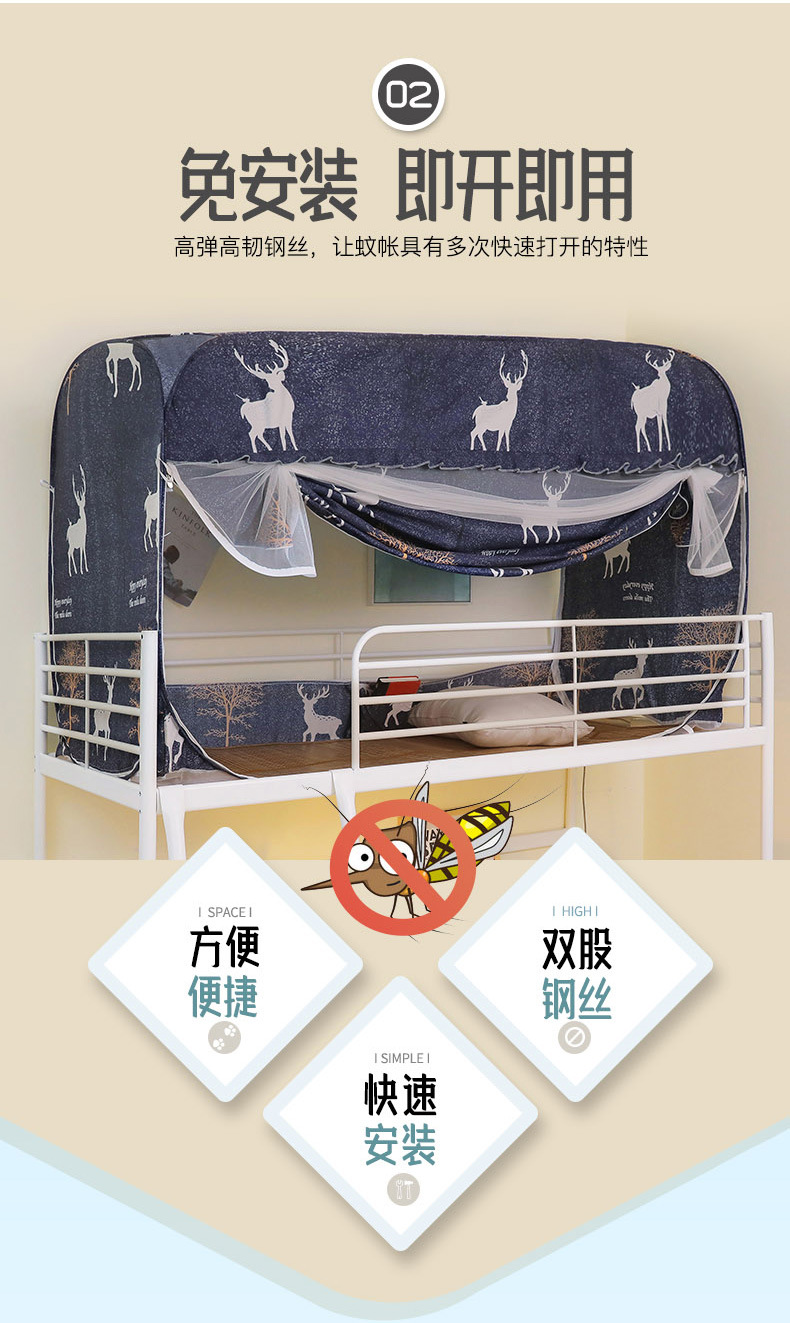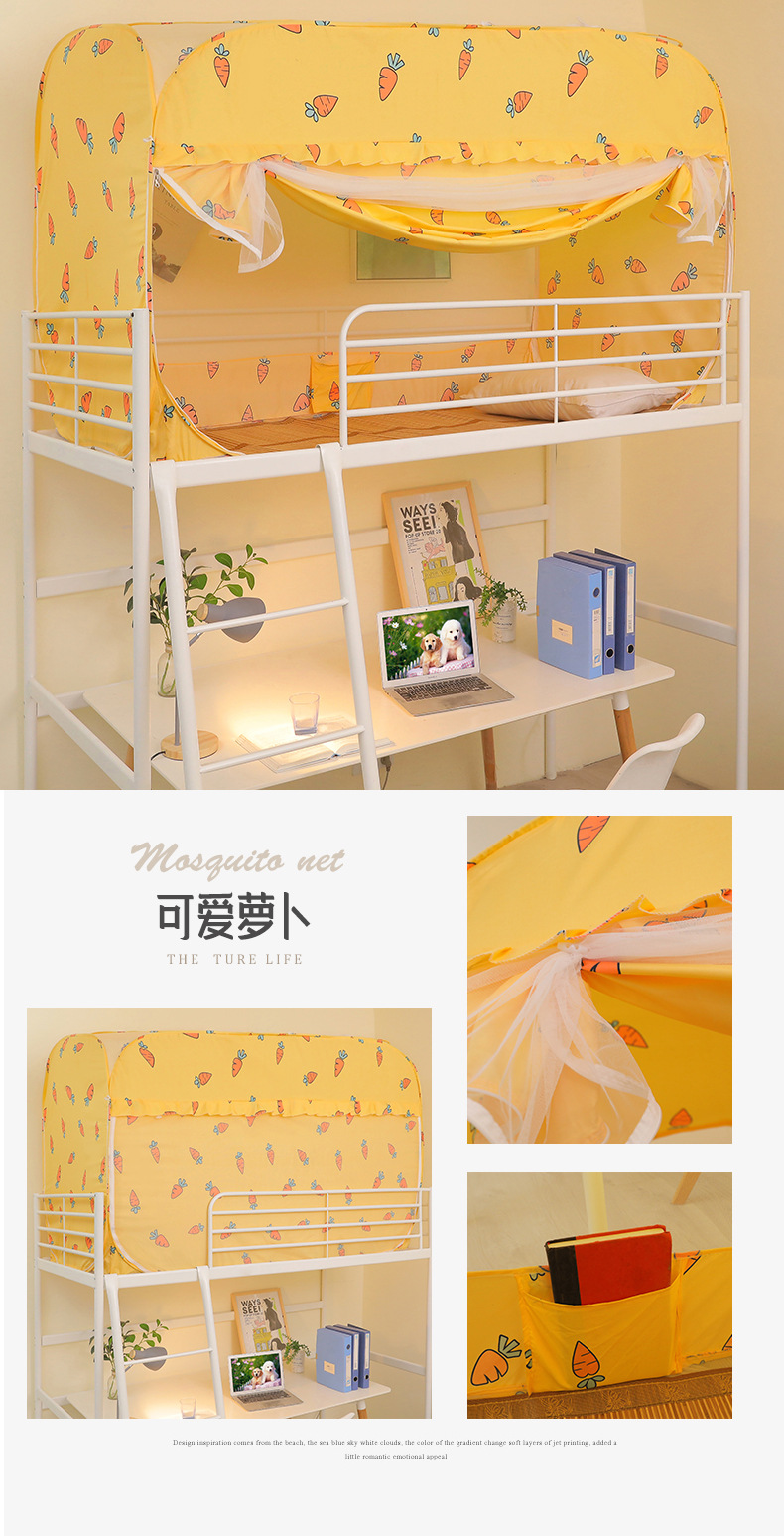 학생 접이식 몽골리안 돔 기숙사 이층 침대 지퍼 모델 전체 그늘망 설치가 필요 없는 모기장 차광 및 방진 침대 커튼스토어 가기