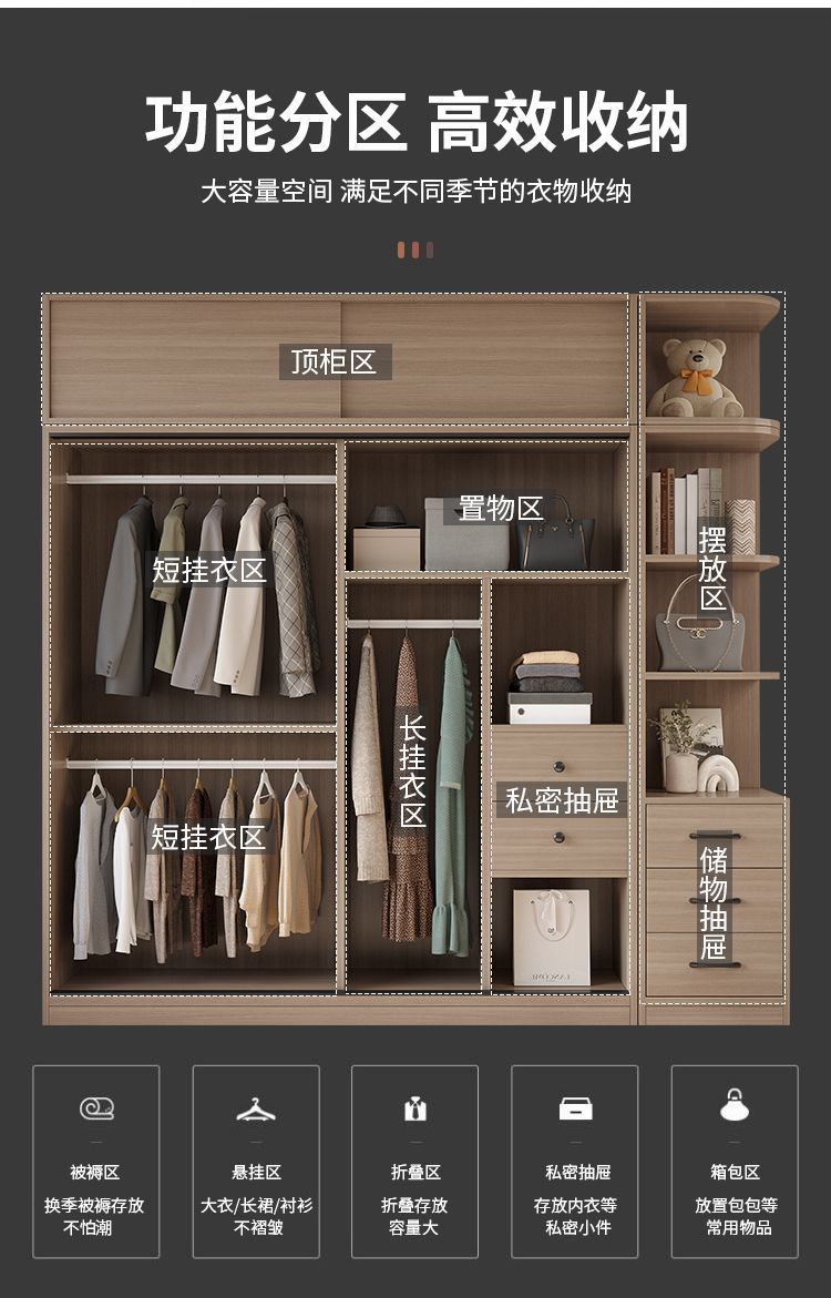 옷장 침실 홈 슬라이딩 도어 캐비닛 현대적인 미니멀리스트 임대 보관 캐비닛 경제적인 대형 옷장