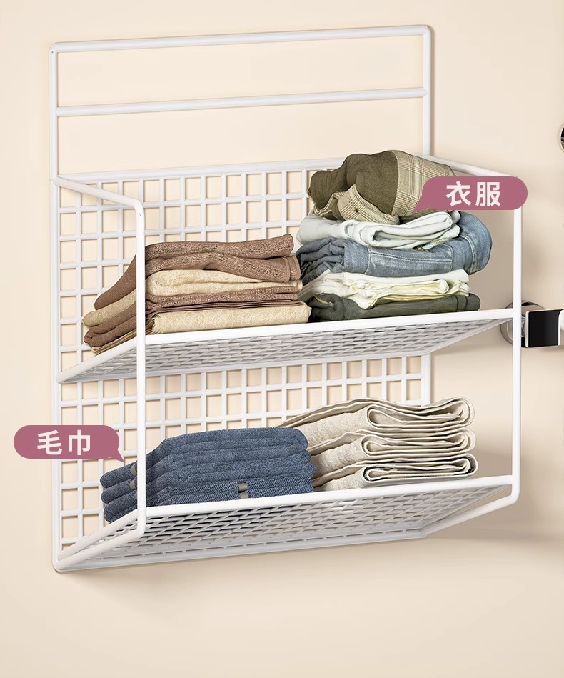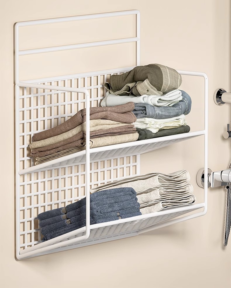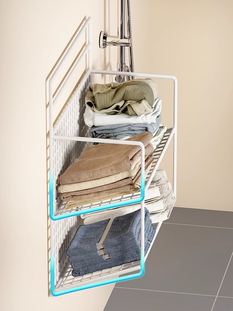 욕실 벽에 구멍이 없는 목욕 수건 보관함, 욕실 옷 벽걸이형 다기능 선반
