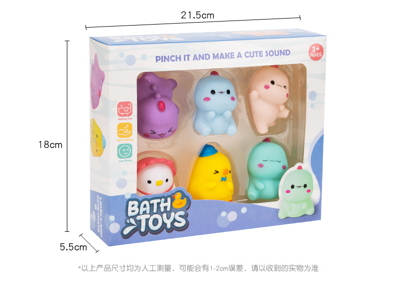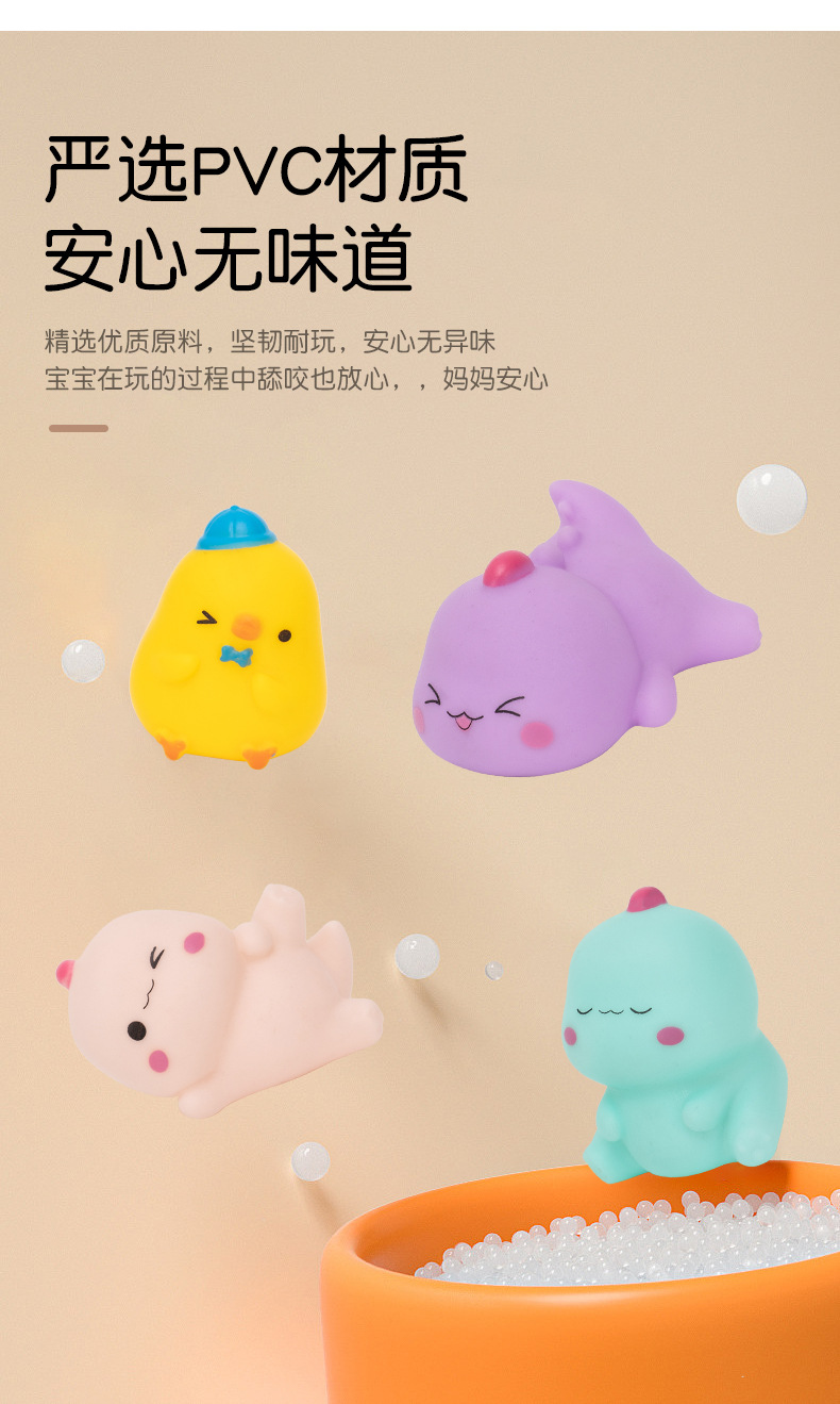 미니 비닐 귀여운 작은 공룡 동물 아기 목욕 장난감, 비닐 물 장난감을 짜서 소리 지르기, 도매스토어 가기