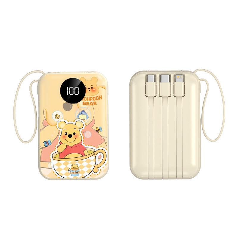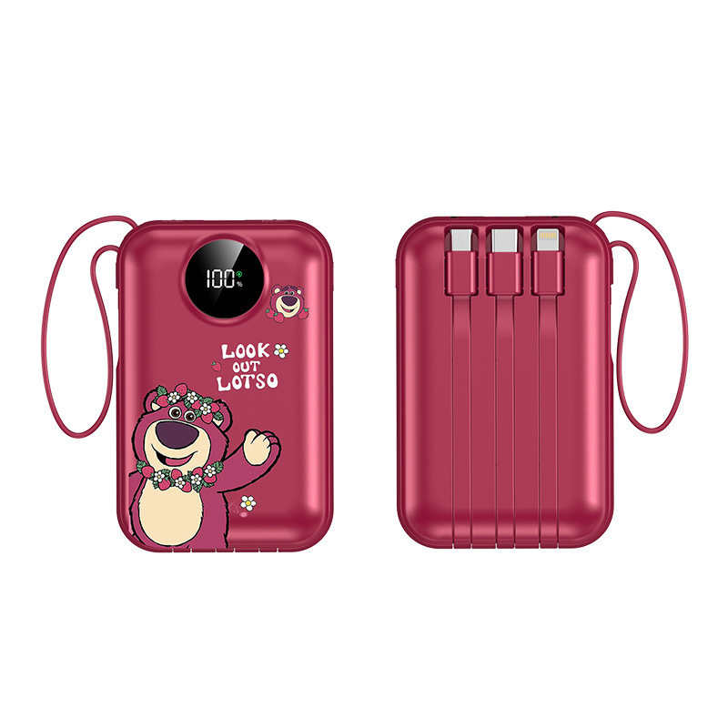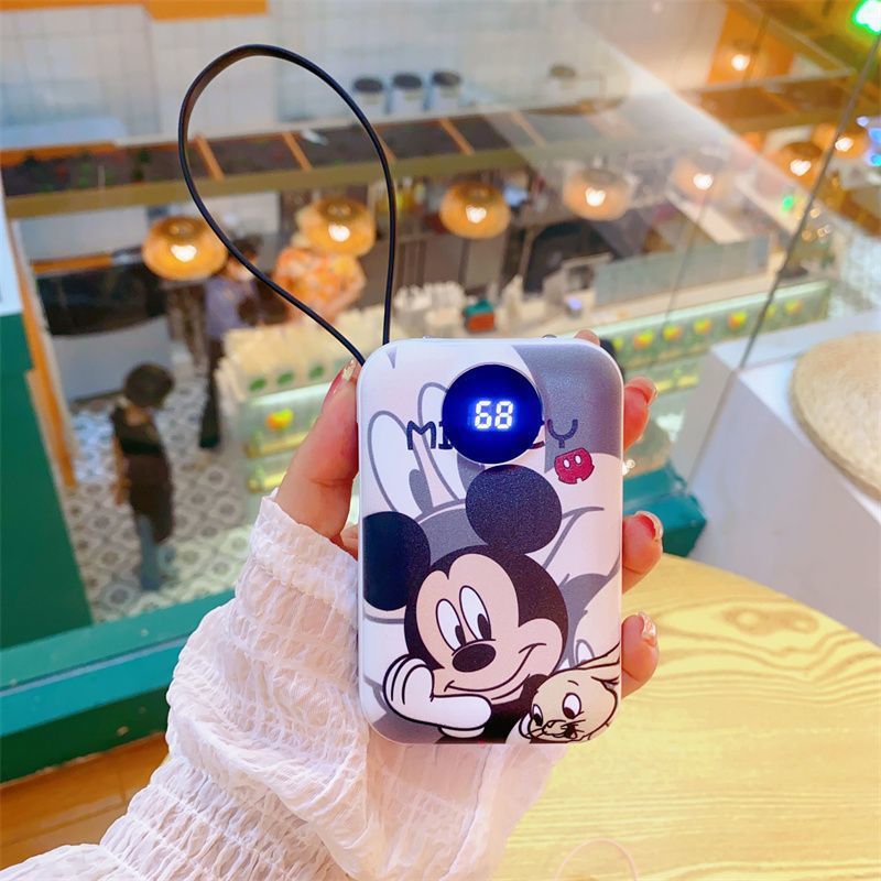 케이블이 내장된 보조베터리, 귀여운 mAh 대용량, 미키와 미니, 초박형, 소형, 휴대용, 범용 휴대폰